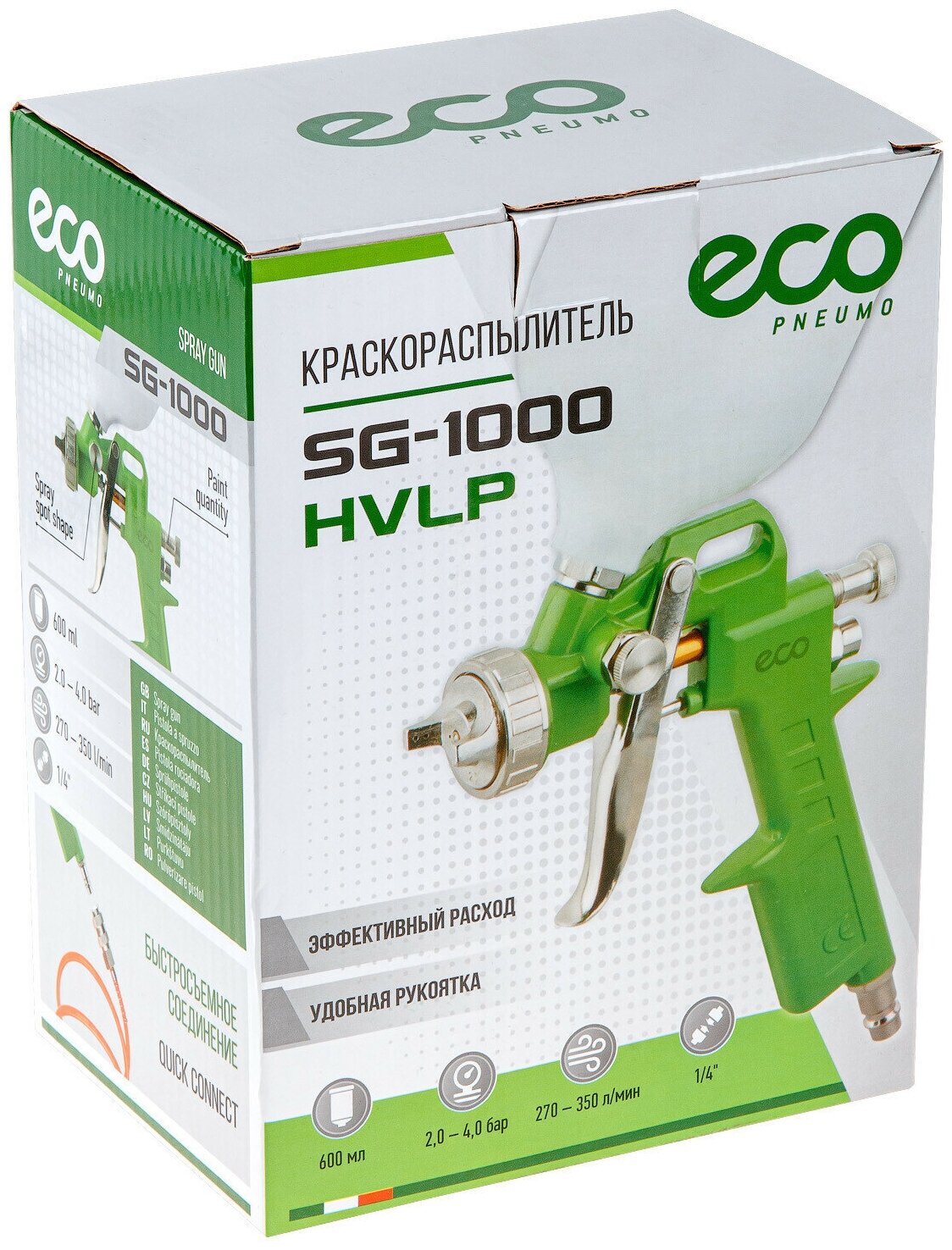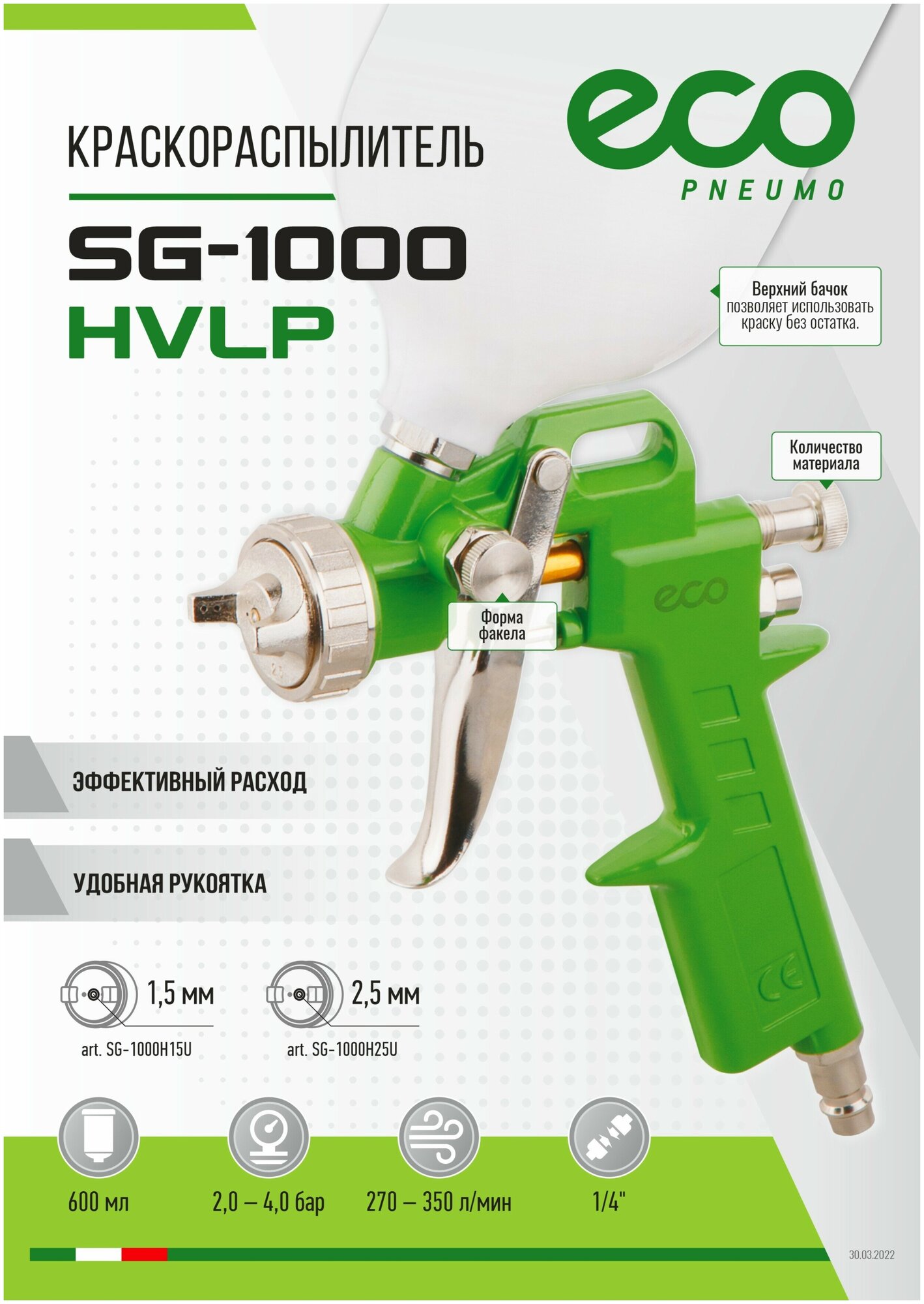 - Краскораспылитель SG-1000 (HVLP, сопло ф 1.5мм, верхний бак 600мл), ECO, Артикул: SG-1000H15U