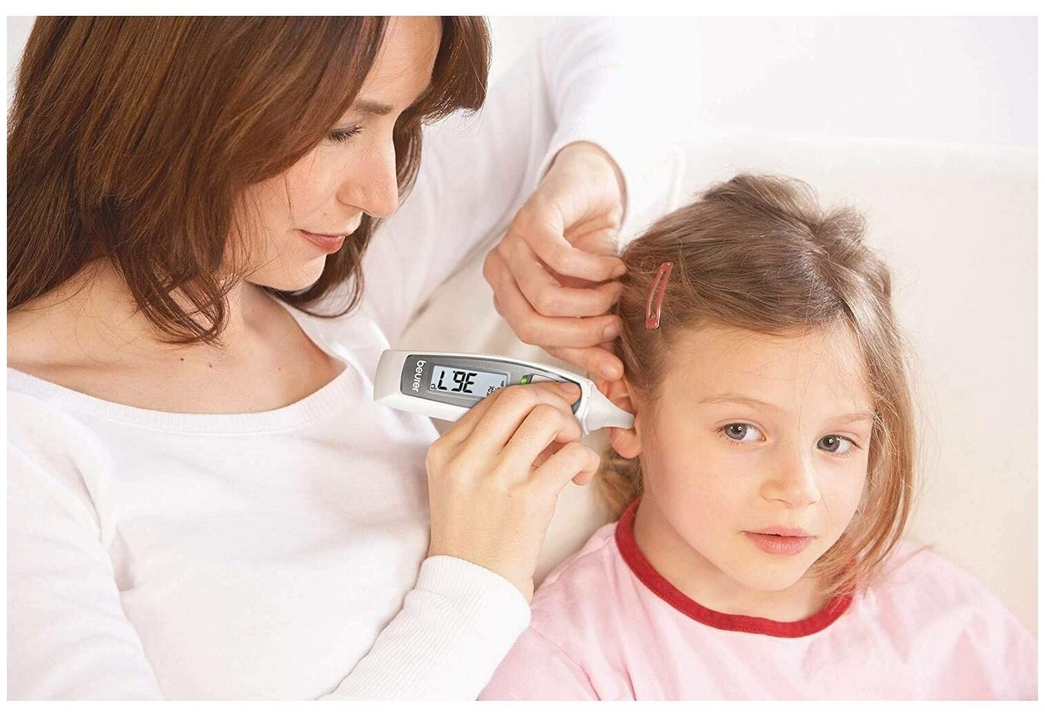 Измерение температуры тела: в ухе или в области лба (инфракрасное излучение) контактным способом.