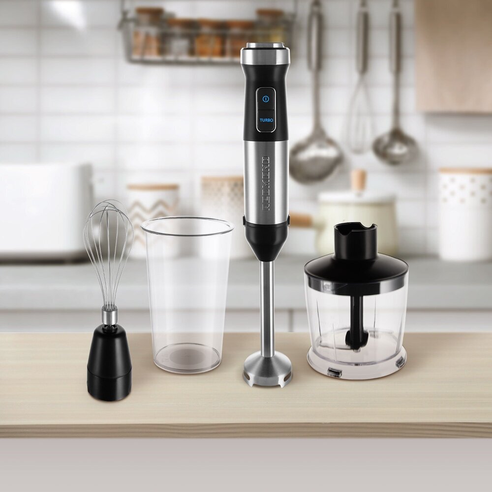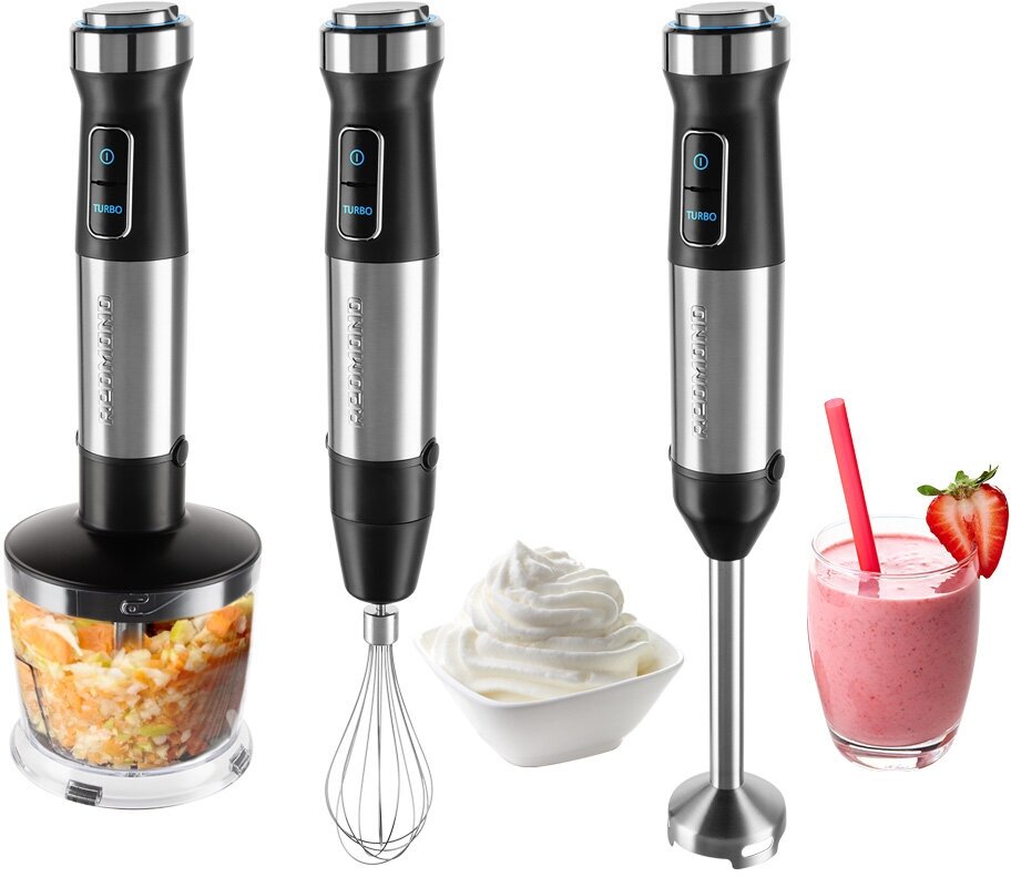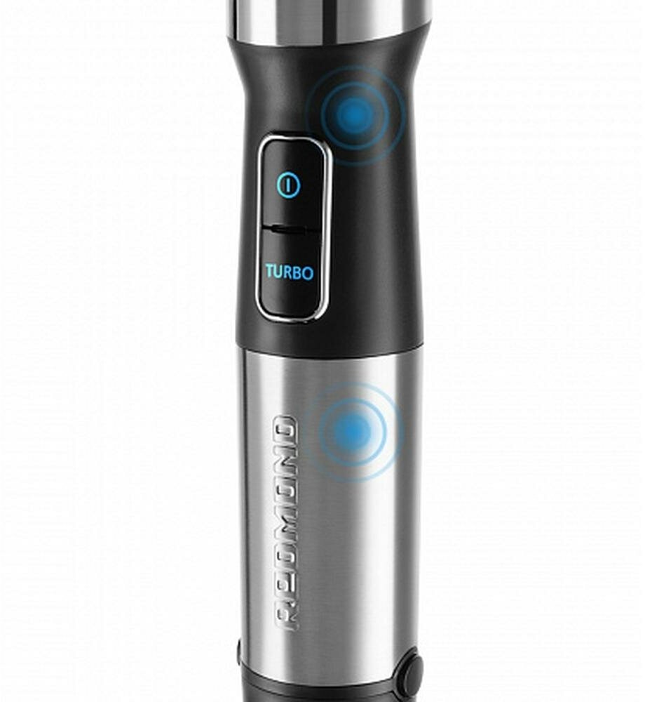 Многофункциональный блендер REDMOND снабжен комплектом сменных насадок, которые позволяют использовать прибор как погружной блендер, миксер или измельчитель. поможет существенно облегчить нарезку овощей для салатов, приготовление жидкого теста, кремов для десертов и подготовку многих других ингредиентов и блюд.