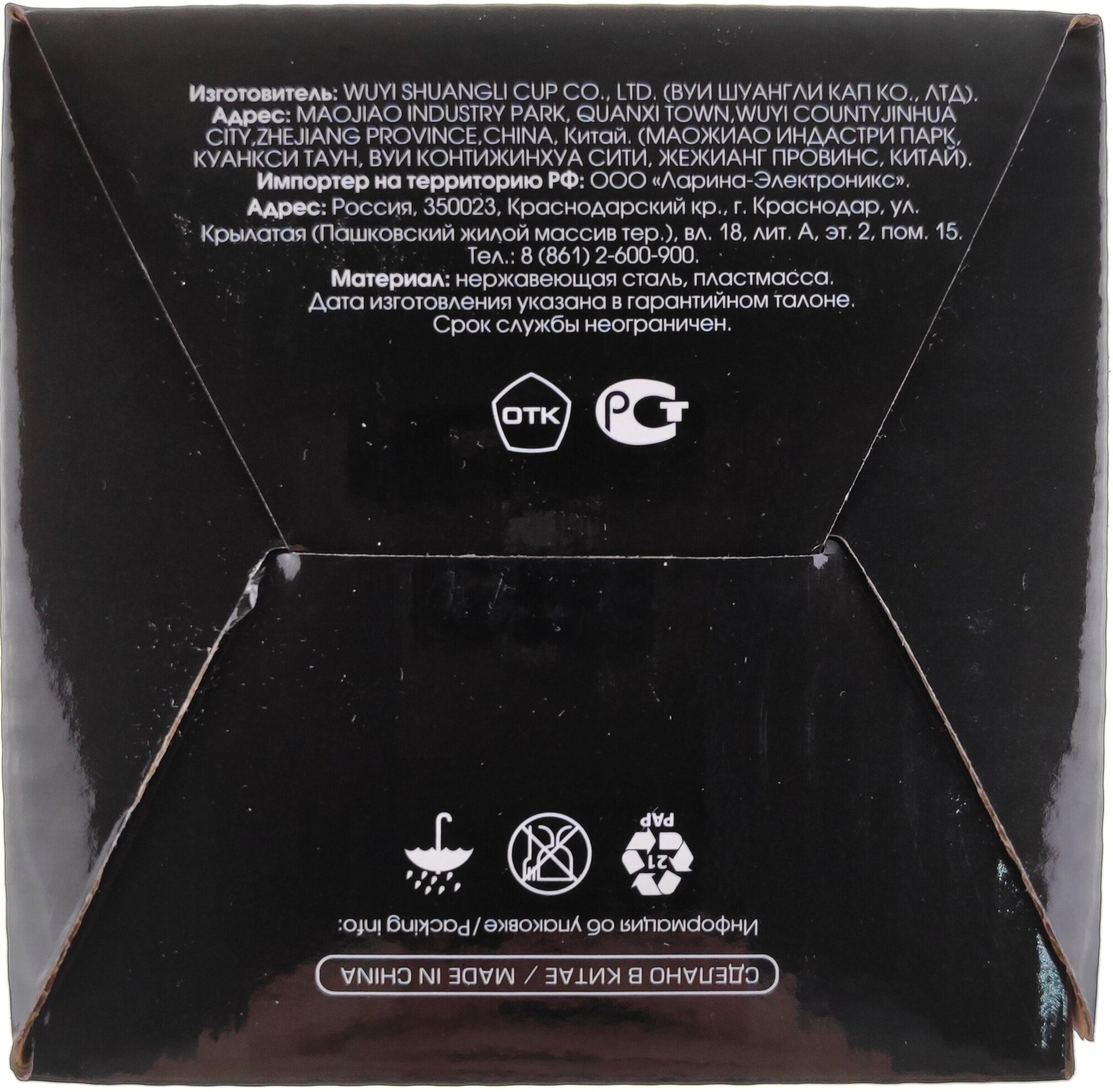 - Кружку неудобно держать в руках, широкая. Сверху ,где открывается-пластмасса. В магазине с браком.