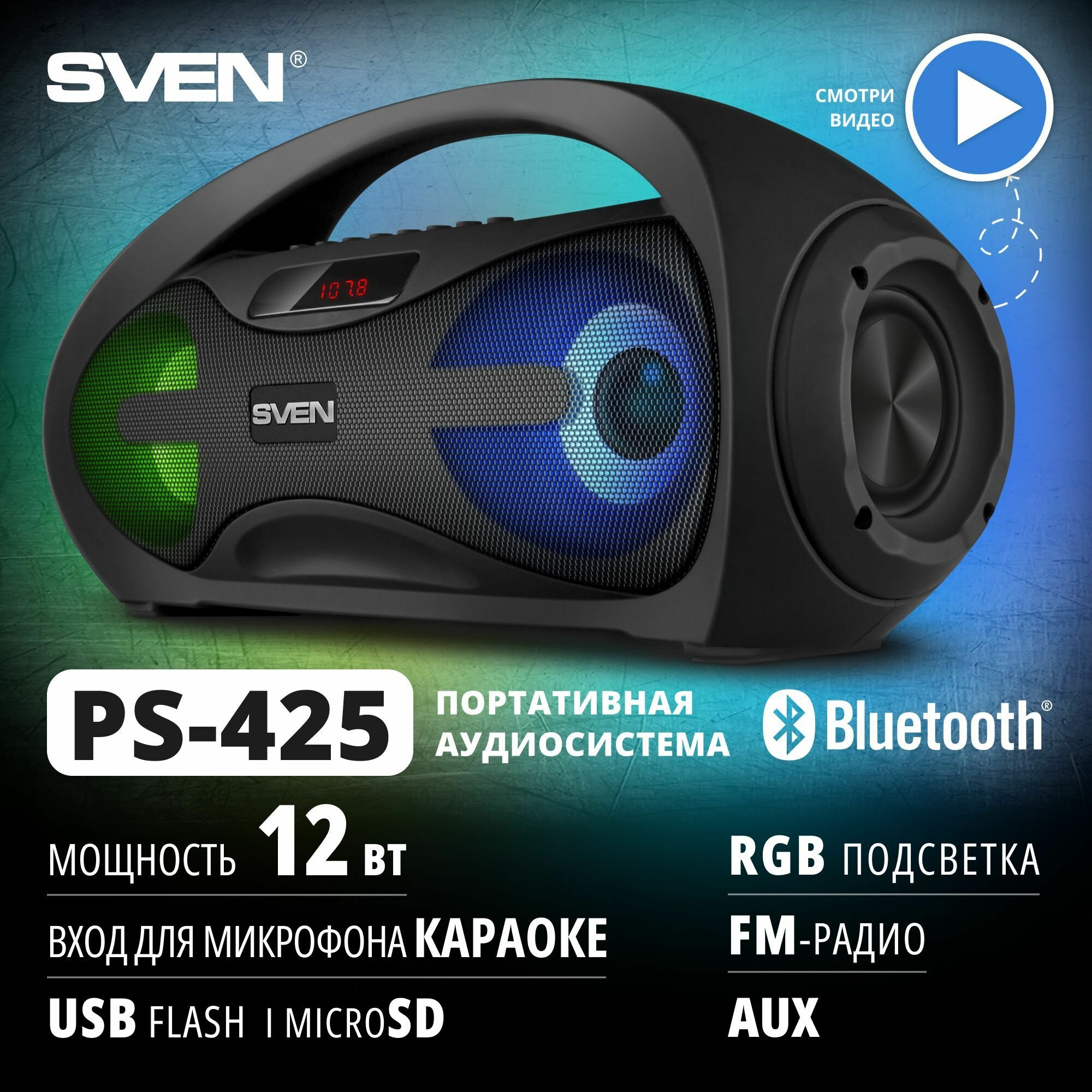 АС SVEN , черный (12 Вт, Bluetooth, FM, USB, microSD, LED-дисплей, 1500мА*ч)
