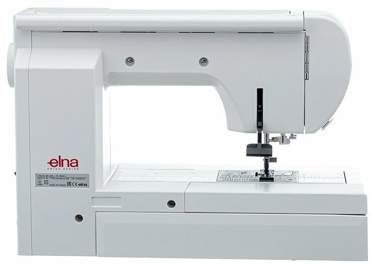 Швейная машина Elna – профессиональная модель с большим набором операций – 482 штуки и скоростью шитья с педалью – 1000 ст./мин. Это позволит выполнять швейные работы высокой сложности на легких и средних тканях. Электронная педаль позволяет плавно набирать скорость. Машинка имеет информационный ЖК-дисплей с подсветкой и встроенную память.