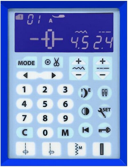 Производители предусмотрели набор лапок для разных операций: оверлочная, для вшивания молнии, верхний транспортер ткани, для декоративной строчки, квилтинга, потайной строчки, пришивания пуговиц и выметывания петли. Автоматическая обработка пуговичной петли происходит за одну операцию. На фронтальной панели размещены основные виды рабочих и декоративных швов. А так как длина и ширина стежка регулируются и фиксируются, то можно говорить о действительно большом количестве швов. К показателям модели относятся: