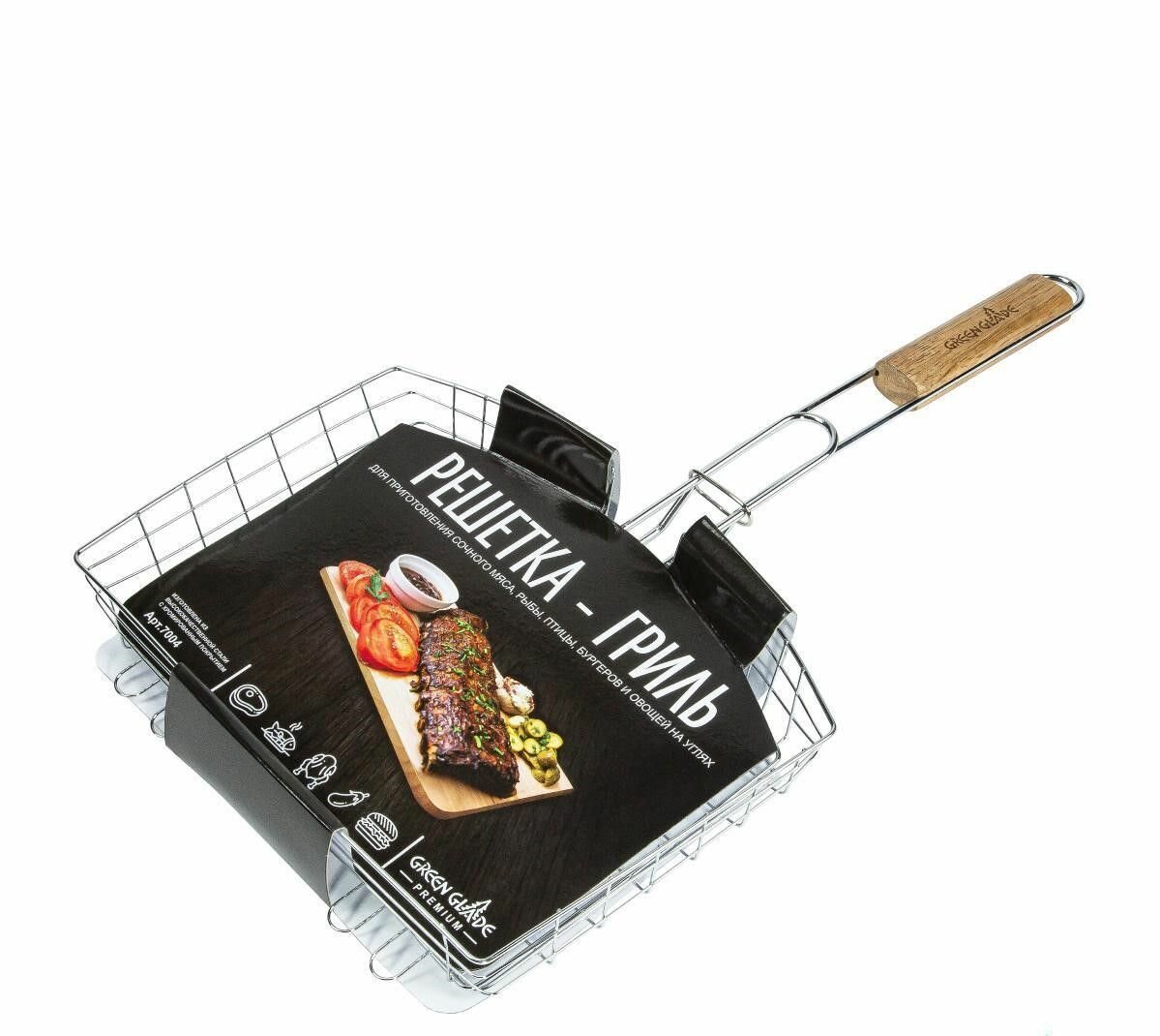 Двойная решетка-гриль это удобное приспособления для приготовления вкусных блюд из мяса, рыбы, овощей на свежем воздухе с помощью углей. Решетка имеет удобную деревянную ручку, а благодаря компактности и небольшому весу ее всегда можно взять с собой на пикник.