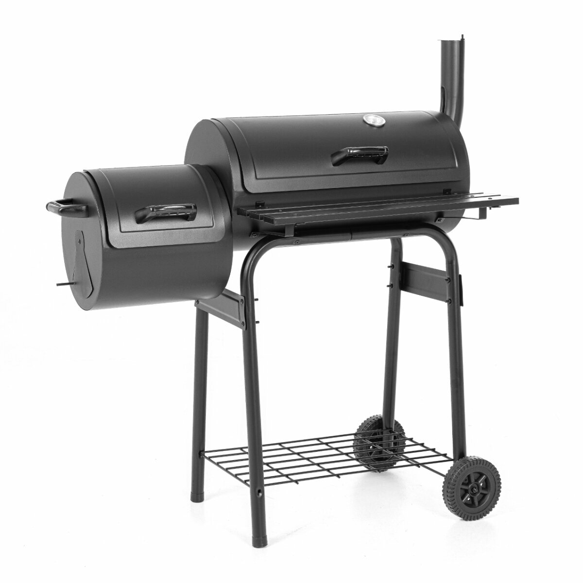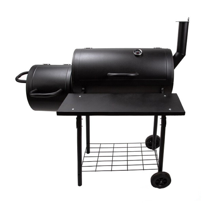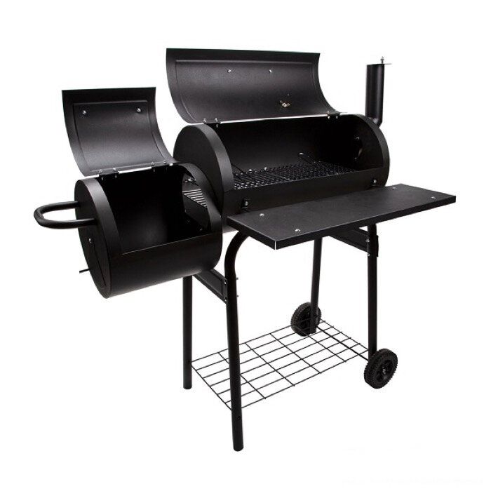Уникальная гриль-коптильня с двумя уровнями разного предназначения. Устойчивость конструкции обеспечивает четыре ножки и два стальных колеса, позволяющие быстро переместить в нужное место расположения.