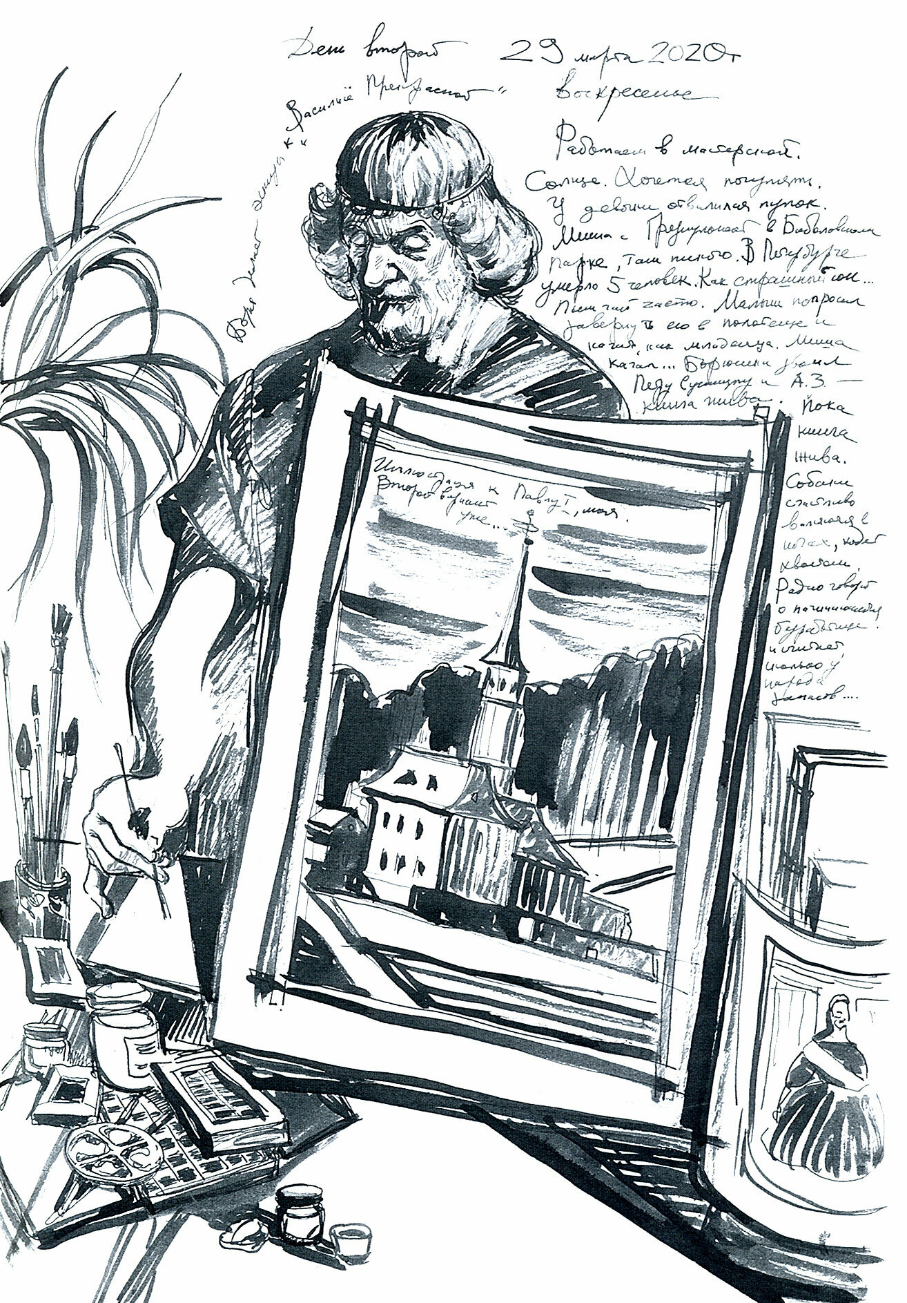 Издание представляет собой цикл графических работ и дневниковые записи известной петербургской художницы Аллы Джигирей, посвященные жизни ее семьи во время самоизоляции, которые она делала ежедневно в течение ста дней, с конца марта по начало июля 2020 года, во время карантина по коронавирусной инфекции.