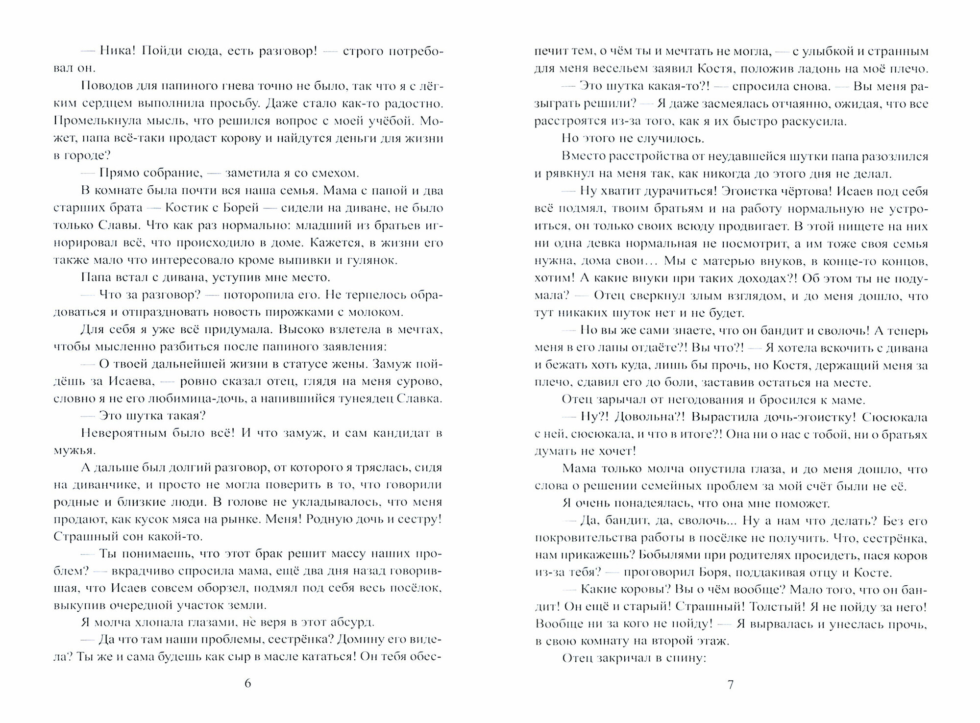 Теперь она вместо учёбы, должна выйти замуж за бандита, чтобы обеспечить жизнь своим родным. Отцу и братьям. Она решает сбежать, но отец грозит, что за это попадёт матери. Мать с ней сбегать не собирается. И девушка в тупике.