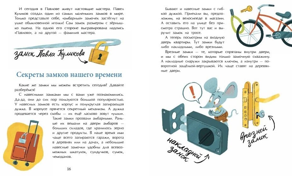 "Дерни за веревочку, дитя мое, дверь и откроется". Вы, конечно, догадались, что речь идет о замке и ключике? А как они появились, вы знаете? Вряд ли. И уж маловероятно, что кто-то знает, как выглядел первый ключ. Если только не прочел книгу "За семью замками" - наглядное пособие, по которому можно изучать историю появления этой "сладкой парочки" - замочка и ключика. С ее помощью ребенку от 6 лет можно интересно и увлекательно поведать о врезных, накладных, биометрических и многих других замках. А иллюстрации, снабжающие книгу, без слов ответят на многие вопросы маленьких почемучек. Рекомендую к семейному прочтению!