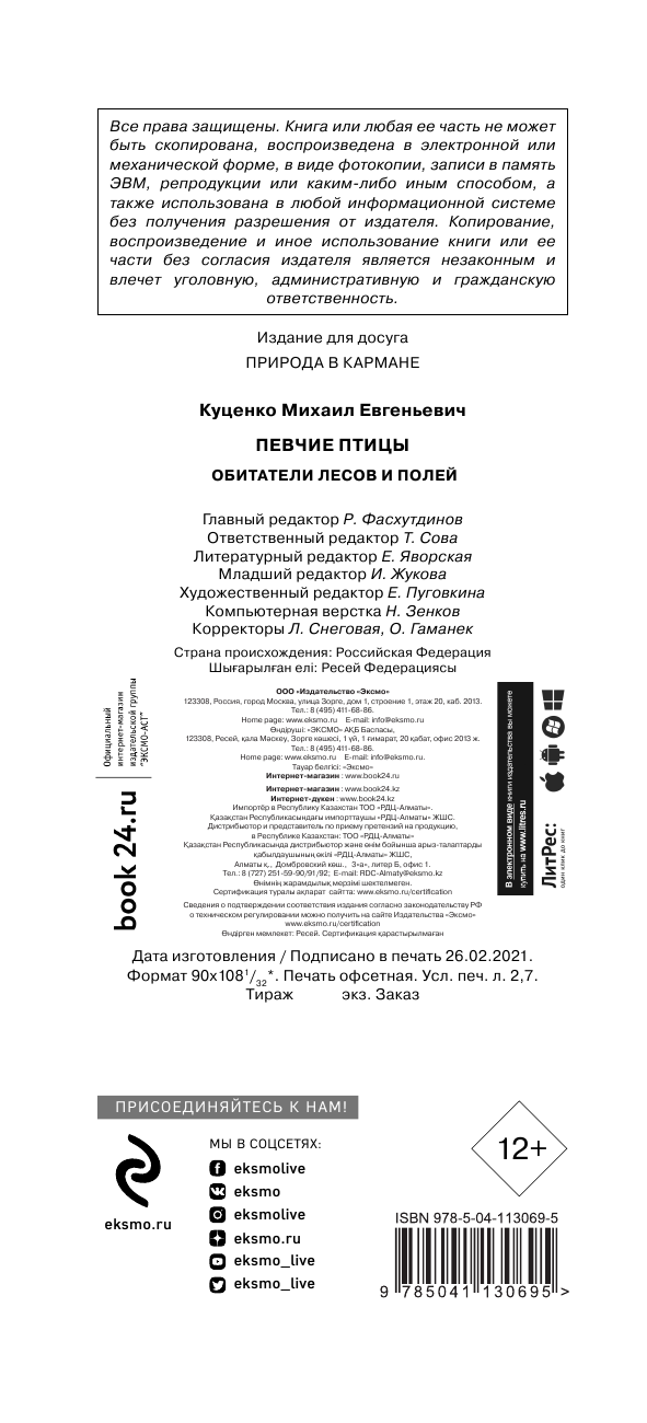 Певчие птицы. Обитатели лесов и полей (Куценко Михаил Евгеньевич); ООО "Издательство "Эксмо", 2021