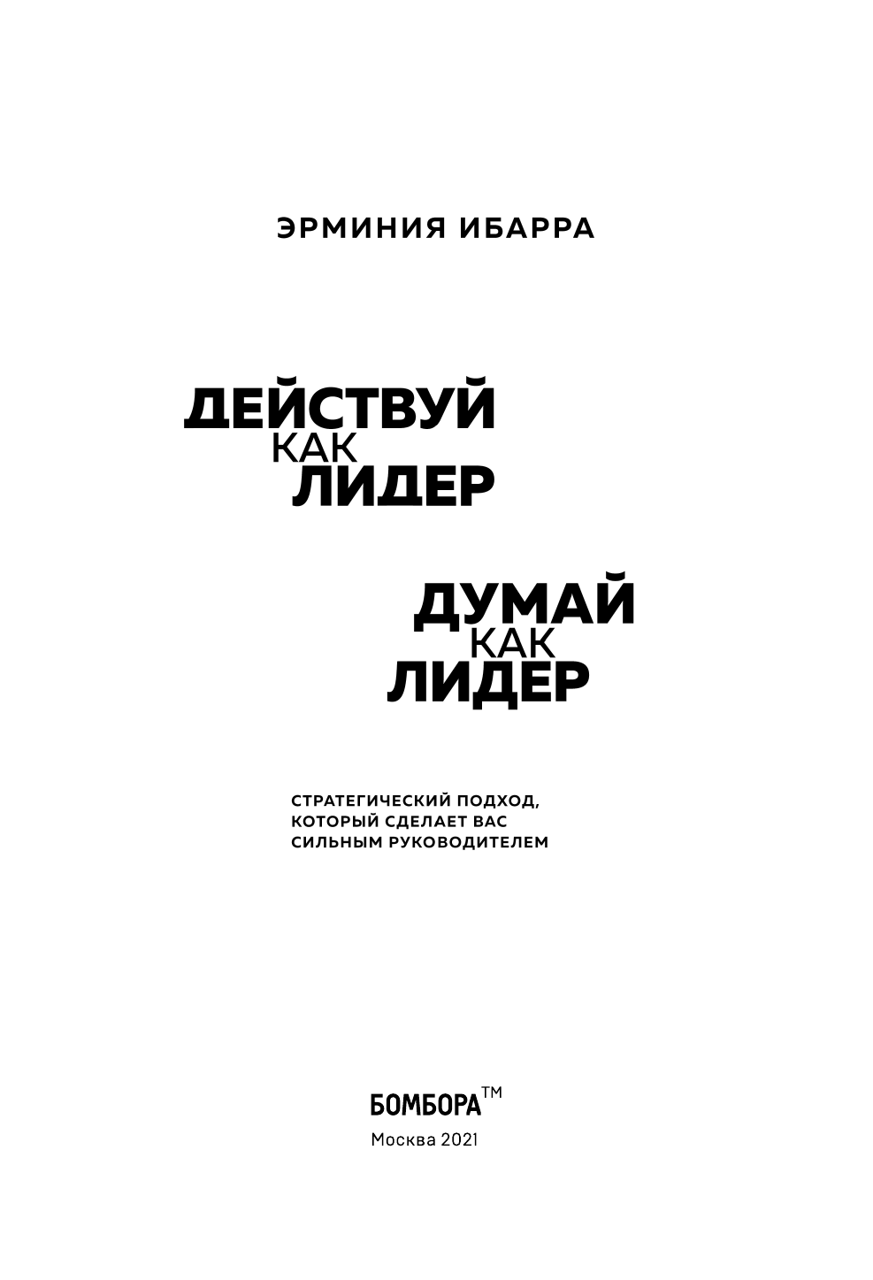 Действуй как лидер думай как лидер. Стратегический подход который сделает вас сильным руководителем (Эрминия Ибарра); Эксмо, БОМБОРА, 2021