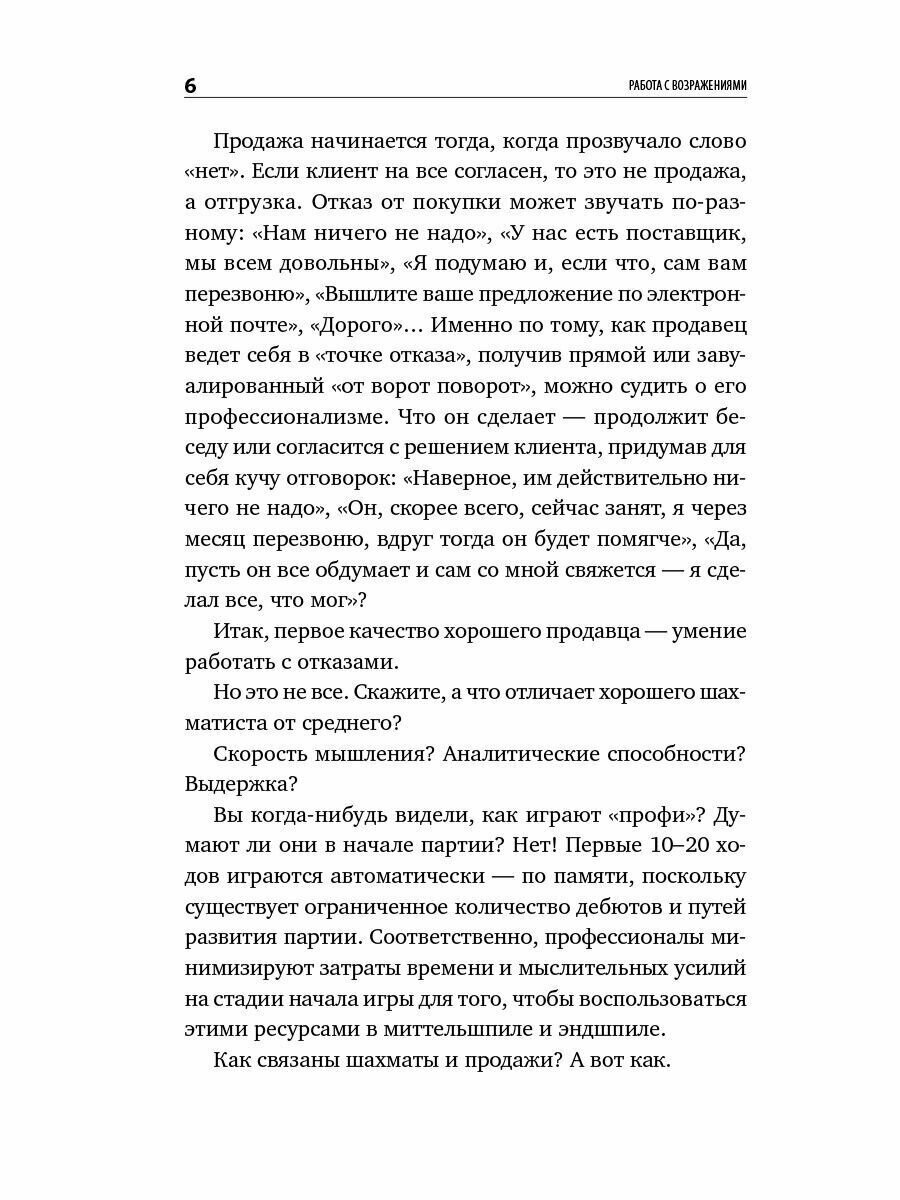 Клиент может сказать свое «НЕТ» десятками способов. Успешного продавца отличает умение выстроить диалог так, чтобы возражения вообще не возникли, и знание готовых ответов на все основные возражения, отговорки и отказы. Если, осуществляя холодные звонки или продавая на встречах, вы сталкиваетесь с возражениями и отказами — эта книга для вас! Она даст вам 200+ приемов и готовых речевых модулей, благодаря которым вы будете легко преодолевать «нет» и выведете ваши навыки продаж и уровень доходов на новый уровень.
