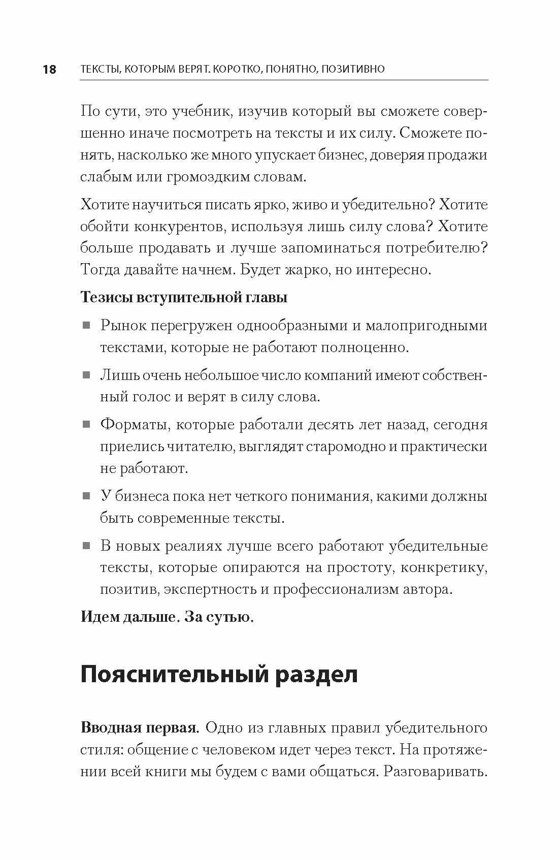 Моя первая книга по данной тематике. Читать было довольно интересно. Много ставила пометок на полях,чтобы возвращаться к ключевым моментам. Информация подана не сухо, а довольно интересно. Очень много примеров как надо и как не надо писать тексты. Какие ошибки совершают копирайтеры. Как хороший текст сделать можно ещё улучшить. Новичкам в этом деле будет достаточно интересно и познавательно.