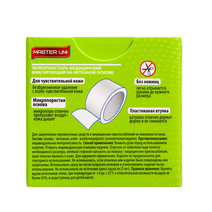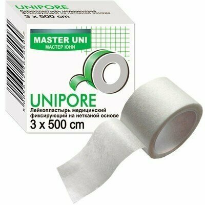 Пластырь медицинский в катушках Master Uni UNIPORE.Применяется для фиксации защитных повязок, тампонов, зондов, катетеров. Основа - нетканый материал из микропористой целлюлозы.