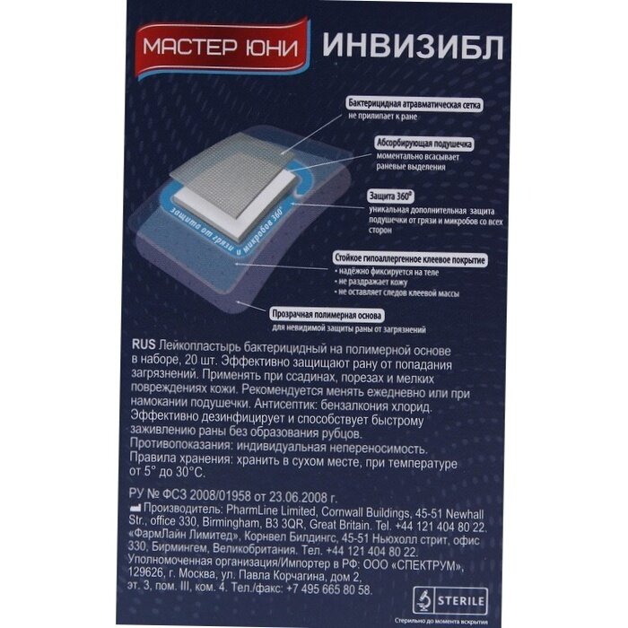 Лейкопластырь бактерицидный водонепроницаемый на полимерной основе Мастер Юни Aqua №20 PharmLine Limited/Everaid CO (1417742)