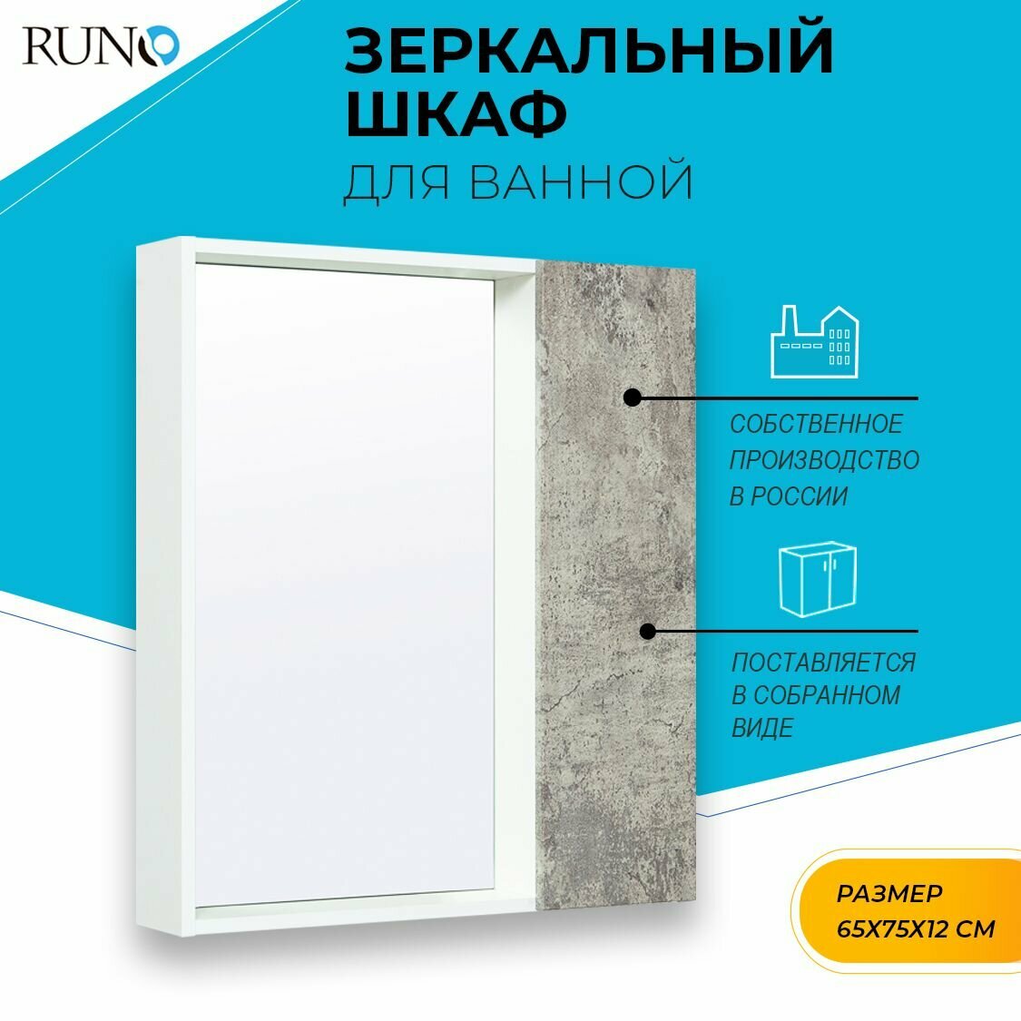 Зеркало со шкафом Runo Манхэттен 65 4620750028947 Белое Серый бетон