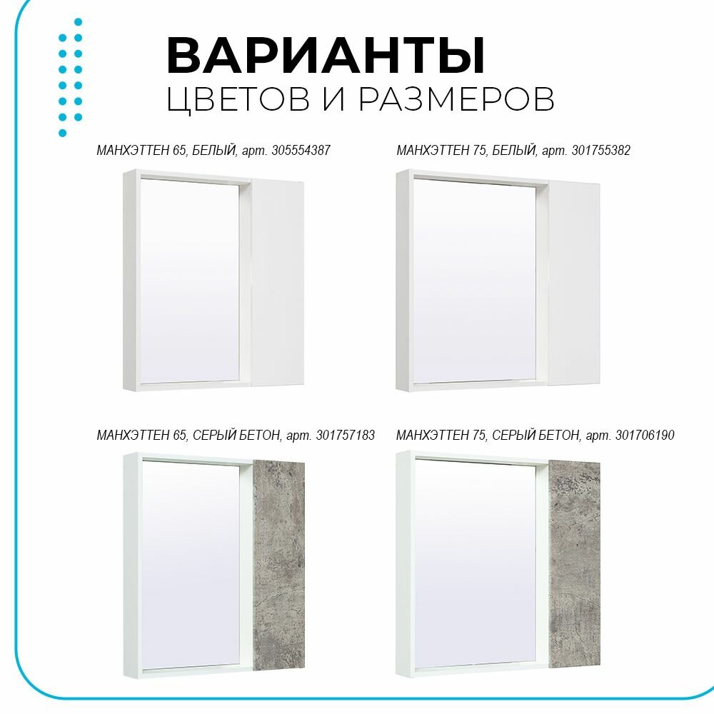 На сегодняшний день товар «Зеркало со шкафом Runo Манхэттен 65 4620750028947 Белое Серый бетон» можно купить с кешбеком в 3 магазинах: Сантехника Тут, Hoff, Яндекс.Маркет