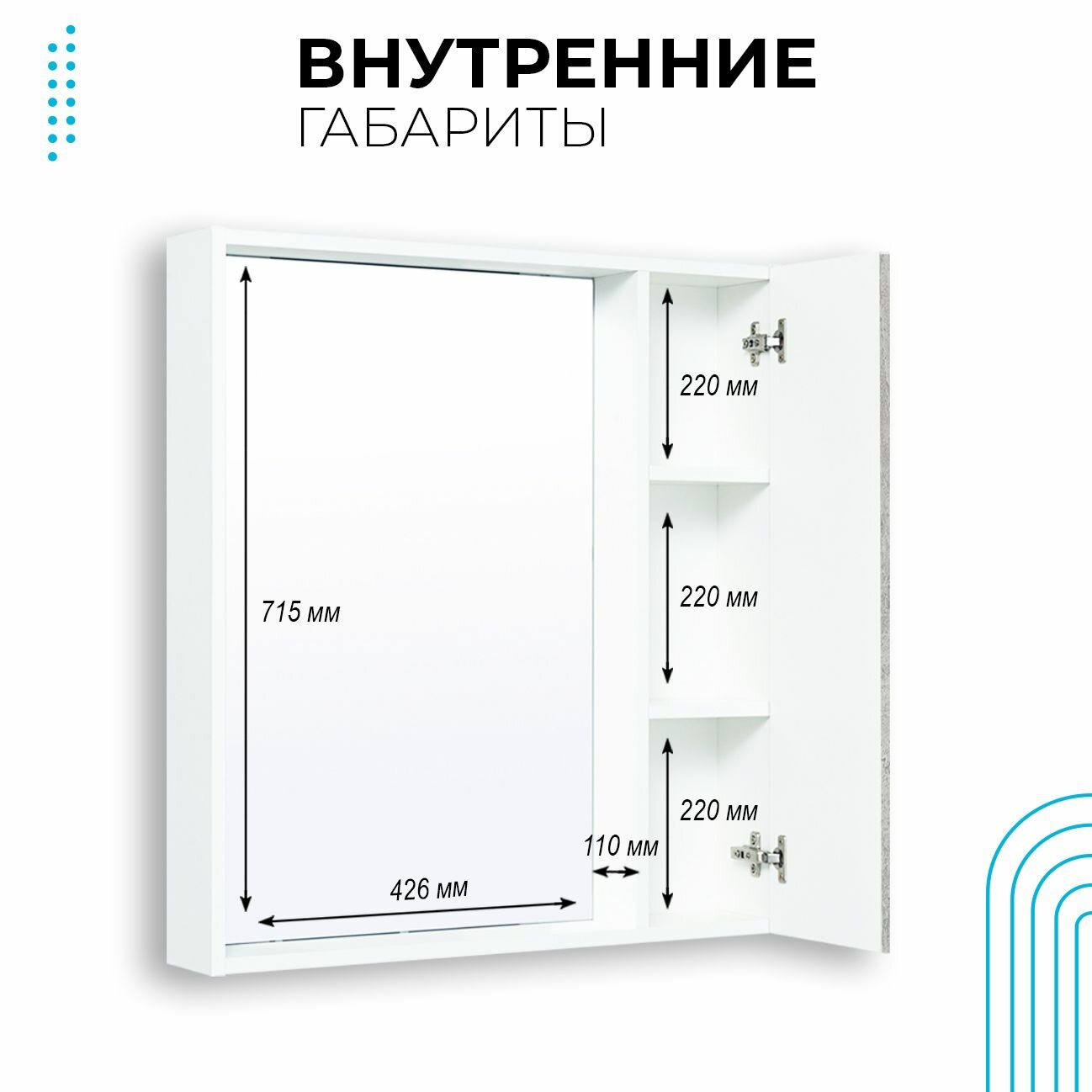 Зеркальный шкаф RUNO МАНХЭТТЕН – это стильное сочетание серой/белой текстуры дуба на фасаде с белым корпусом. Зеркало для ванной (слева) и шкаф в ванную с одной дверцей (справа) комплектуется двумя внутренними полками. Шкаф для ванной оборудован петлями со встроенным доводчиком. Шкаф-зеркало универсальный (для смены ориентации изделие поворачивается на 180 градусов). Зеркало МАНХЭТТЕН – это эргономичность пространства ванной комнаты, удобство использования и вместительность. Мебель для ванной RUNO – красота и практичность в мелочах!