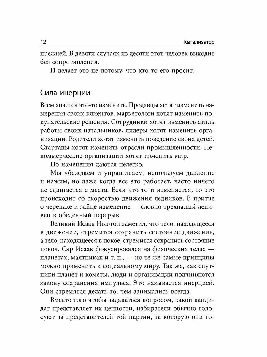 Смысл не в том, чтобы усиливать давление или топить в лавине информации, - вы должны стать катализатором, который устранит препятствия, мешающие переменам. Вместо того чтобы спрашивать: "Как я могу заставить кого-то?", спросите себя: "Что его останавливает?"