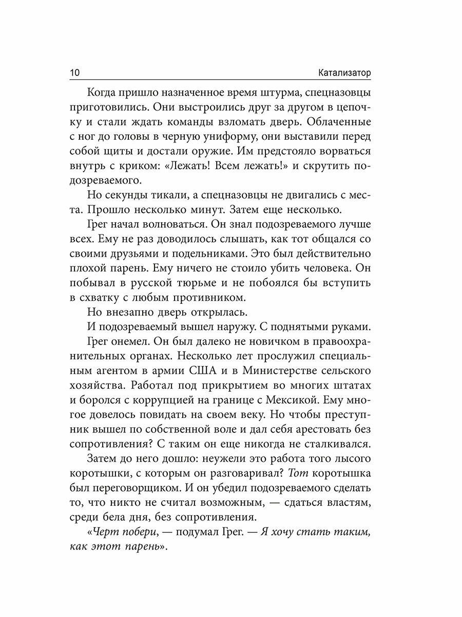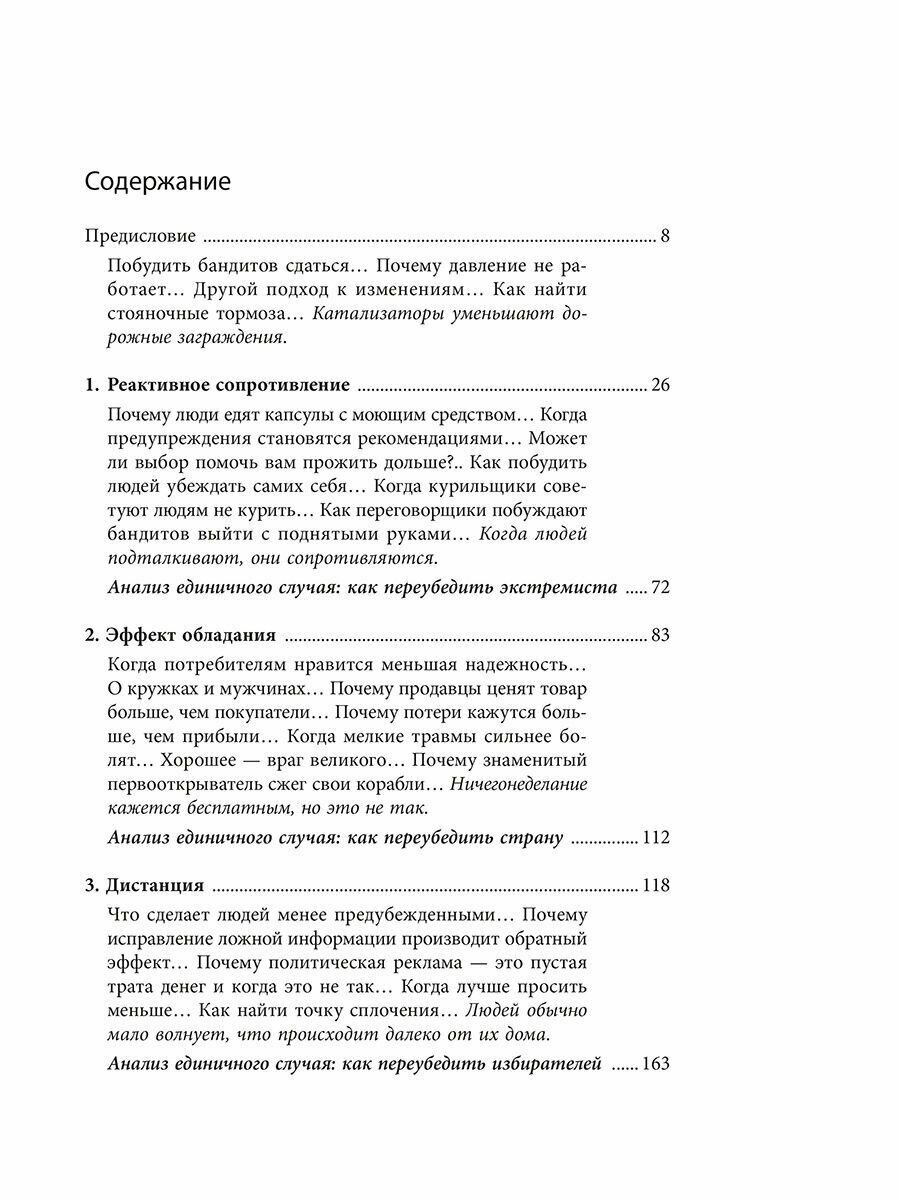 Йона Бергер рассказывает о главных барьерах на пути переворота в сознании и способах их преодоления. Вы узнаете, как во время операций по освобождению заложников переговорщики заставляют террористов выйти с поднятыми руками, как маркетологи делают популярными новые продукты, как лидеры трансформируют корпоративную культуру, как активисты разжигают пламя общественных движений и как политические агитаторы меняют глубоко укоренившиеся политические убеждения.