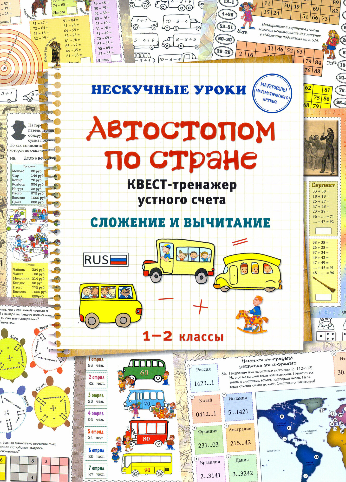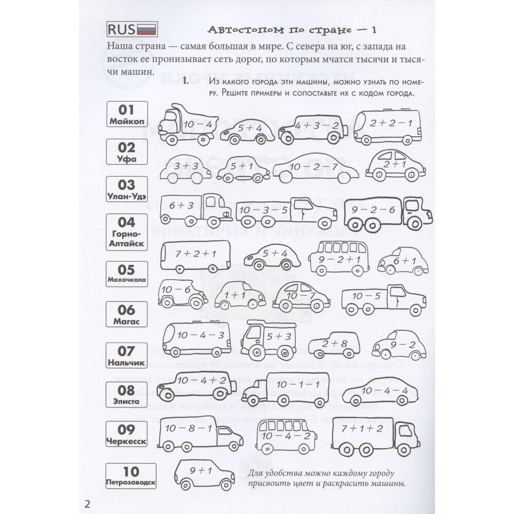 "Устный счет гимнастика для ума". Сделать его интересным и разнообразным поможет тетрадь "Автостопом по стране. Квест-тренажер устного счета", предназначенная для учеников 1-2 классов. Задание каждого разворота направлено на отработку определенного типа примеров устного счета от счета в пределах 10, до сложения и вычитания четырехзначных чисел. Тренажер подойдет как для индивидуальной работы, так и для коллективных квестов на уроках и занятиях математических кружков.