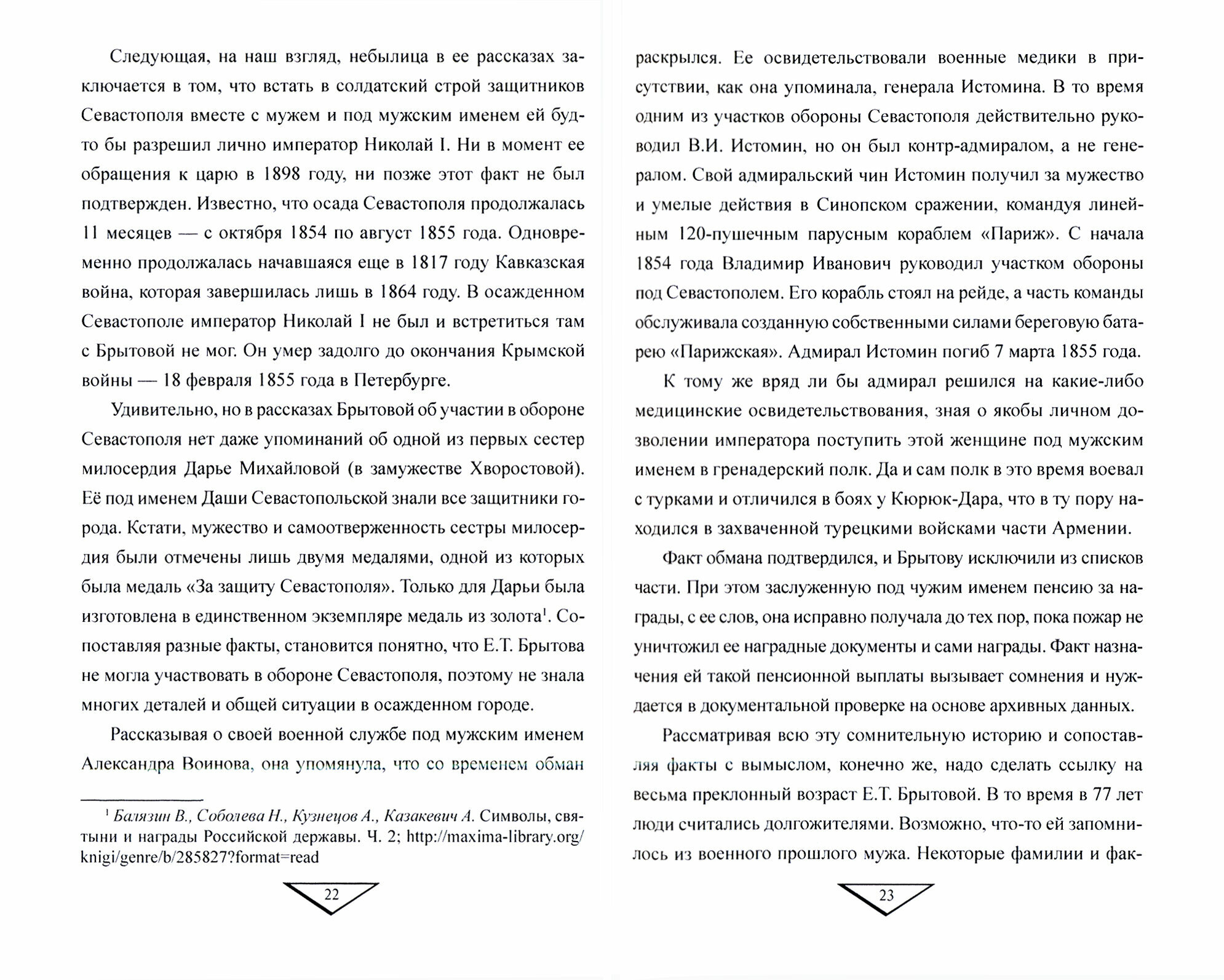 Новые факты участия женщин в войнах России дополнены биографиями ударницы М.Л. Бочкарёвой, краснознамёнки и разведчицы М.Ф. Сахновской, дослужившейся до генеральской должности. Автором также рассмотрены малоизвестные подробности жизни и военной судьбы женщины-комиссара Главного морского штаба Л.М. Рейснер и единственной в истории женщины-командира бронепоезда Л.Г. Мокиевской-Зубок.