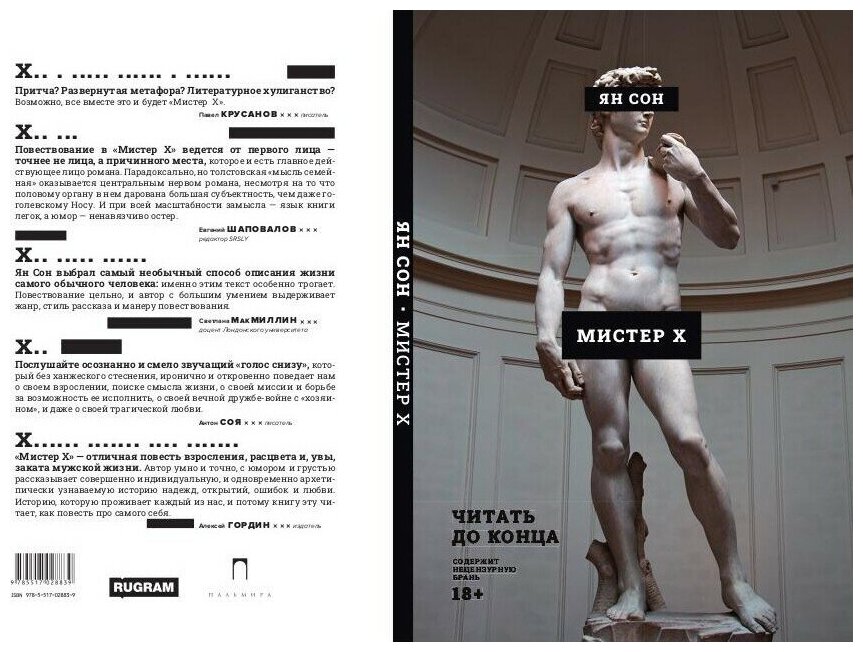 Эта книга по своему построению имитирует роман-воспитание (детство героя, юность, взросление, зрелость, золотая осень - соблюдены все условия жанра), что придает ей своего рода дополнительное измерение - автор как бы приглашает читателя в литературную игру, подразумевающую определенную культурную традицию и многоплановую структуру текста. Вместе с тем повесть написана ярким, живым, пластичным языком городской улицы, что делает ее доступной для читателей всех возрастных групп, сохранивших интерес к современной литературе. Следуя в фарватере традиции отечественной литературы, автор повести Ян Сон наделяет детородный орган своего героя сознанием, не зависимым от его большого тела. Так Гоголь поступил с носом майора Ковалева, а Шварц с тенью ученого Христиана-Теодора. Сюжетное отличие в том, что в данном случае орган понимает неразрывную связь с метрополией и не посягает на суверенитет. Однако гнет свою линию. Забавный опыт: тревожные поиски самоидентификации, подростковое самолюбование, предчувствие высшего смысла, пора цветения и, наконец, бунтарский закат, завершающийся примирением с уготованной участью. Притча? Развернутая метафора? Литературное хулиганство? Возможно, все вместе это и будет "Мистер X".