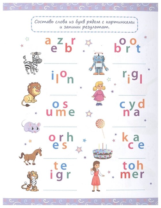 Из всех прописей этой серии - данное издание понравилось меньше всего. Это скорее сборник ребусов и головоломок, а не прописи. Задания внутри для разного уровня подготовленности: для одних можно даже не знать всех букв, а для других надо знать целые слова и уметь их писать. Подойдет для развлечения в дороге или для того, чтобы не забыть английский летом. Качество бумаги и цвета картинок очень хорошие.
