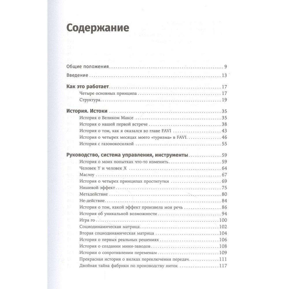 Маленькая французская компания FAVI, которая занимается выпуском вилок для коробок передач и роторами, стала известна за пределами автомобильного рынка благодаря книге Фредерика Лалу о бирюзовых организациях. Так называют компании будущего, где ценности ставят превыше прибыли, а вместо жесткой иерархической структуры царит самоуправление. Эта книга – история от первого лица, рассказанная бессменный (на протяжении несколько десятилетий) генеральным директором компании FAVI Жан-Франсуа Зобристом. Он рассказывает о том, с какими трудностями ему пришлось столкнуться, как он придумал и распространил по своей компании те принципы, которые уже не одно десятилетие приносят любовь клиентов и помогают удерживать одно из лидирующих положений на рынке. Вы узнаете, как можно управлять через доверие и чем для бизнеса полезен лозунг, что каждый человек хороший.