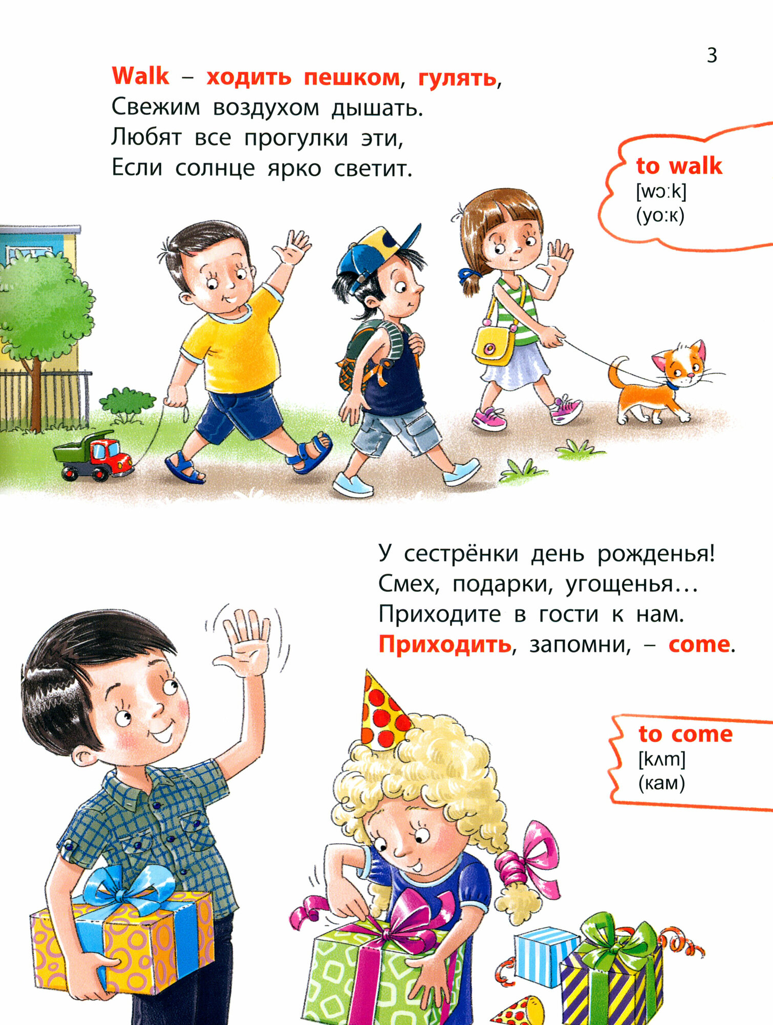 Эта книга - не учебник или методическое пособие по изучению иностранного языка. Она поможет вам легко и в игровой форме познакомить малыша с английскими глаголами. Под её обложкой - всё, что так любят дети: весёлые стихи и яркие картинки. В помощь родителям для каждого глагола даны две транскрипции - классическая (написана с помощью международных знаков) и практическая (написана с помощью русских букв, как это принято в разговорниках).