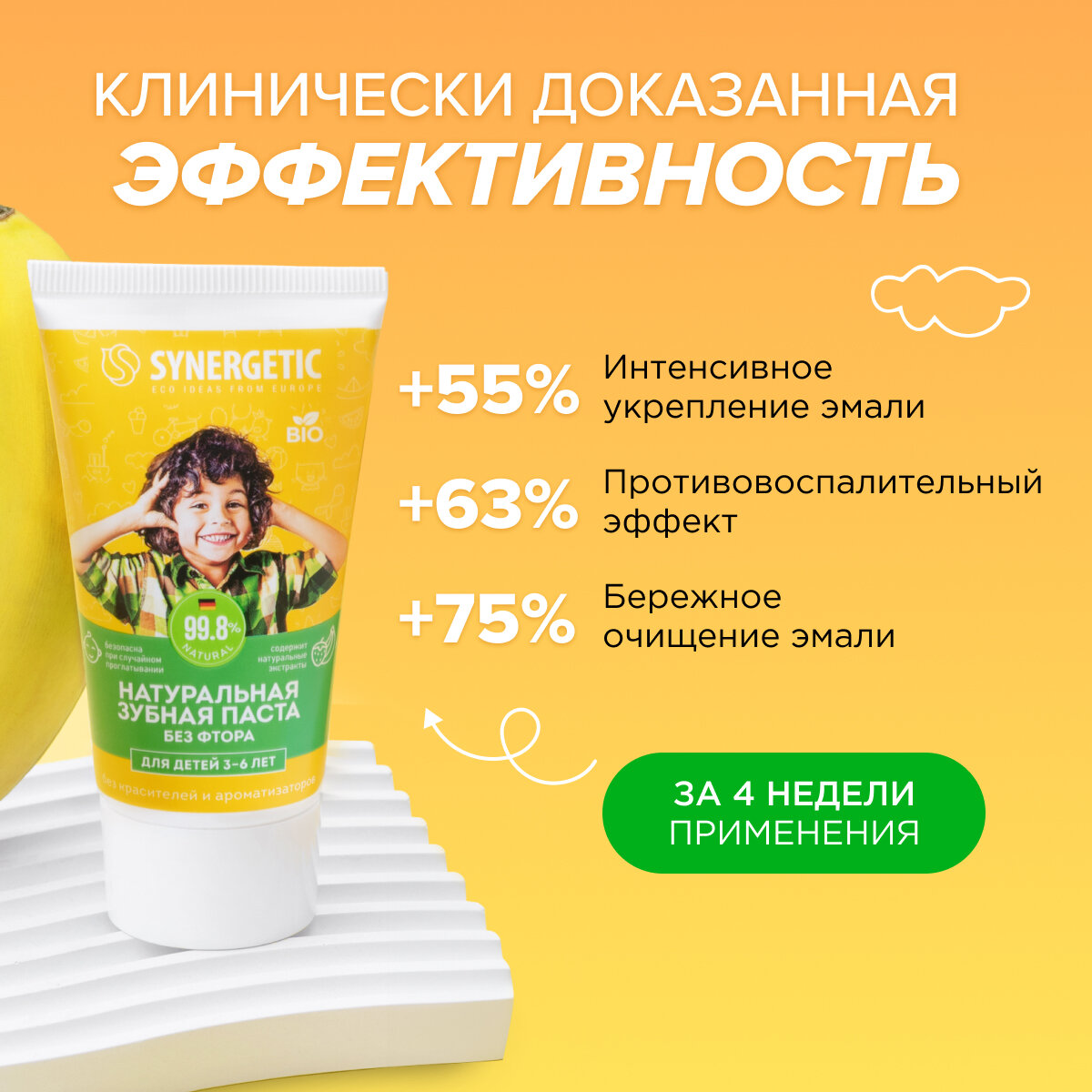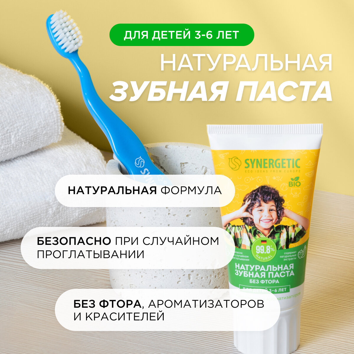 Зубная паста Synergetic детская от 3 до 6 лет 50г