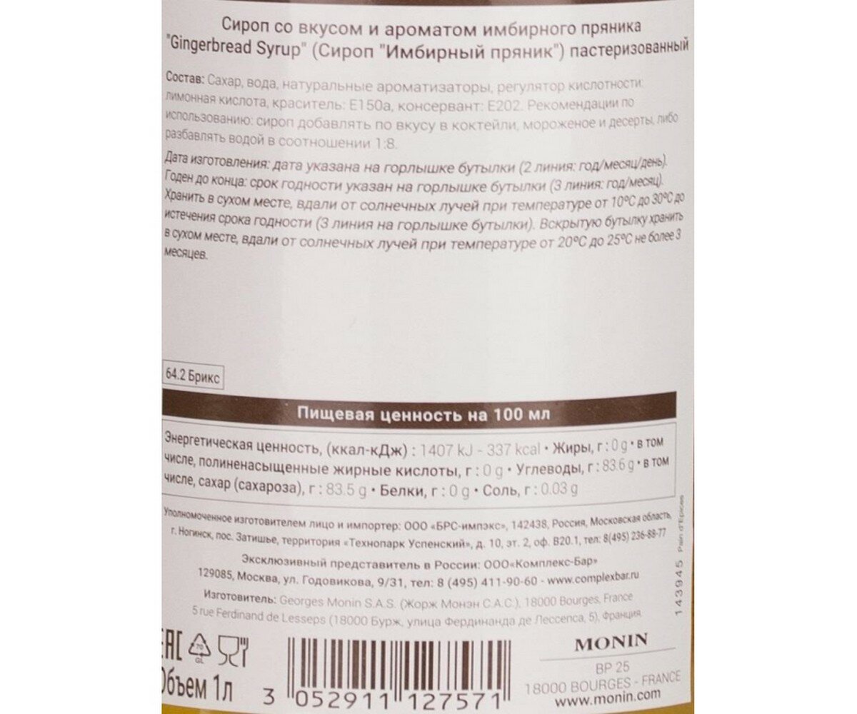 Модель: Сироп Monin Имбирный пряник, 1000 мл