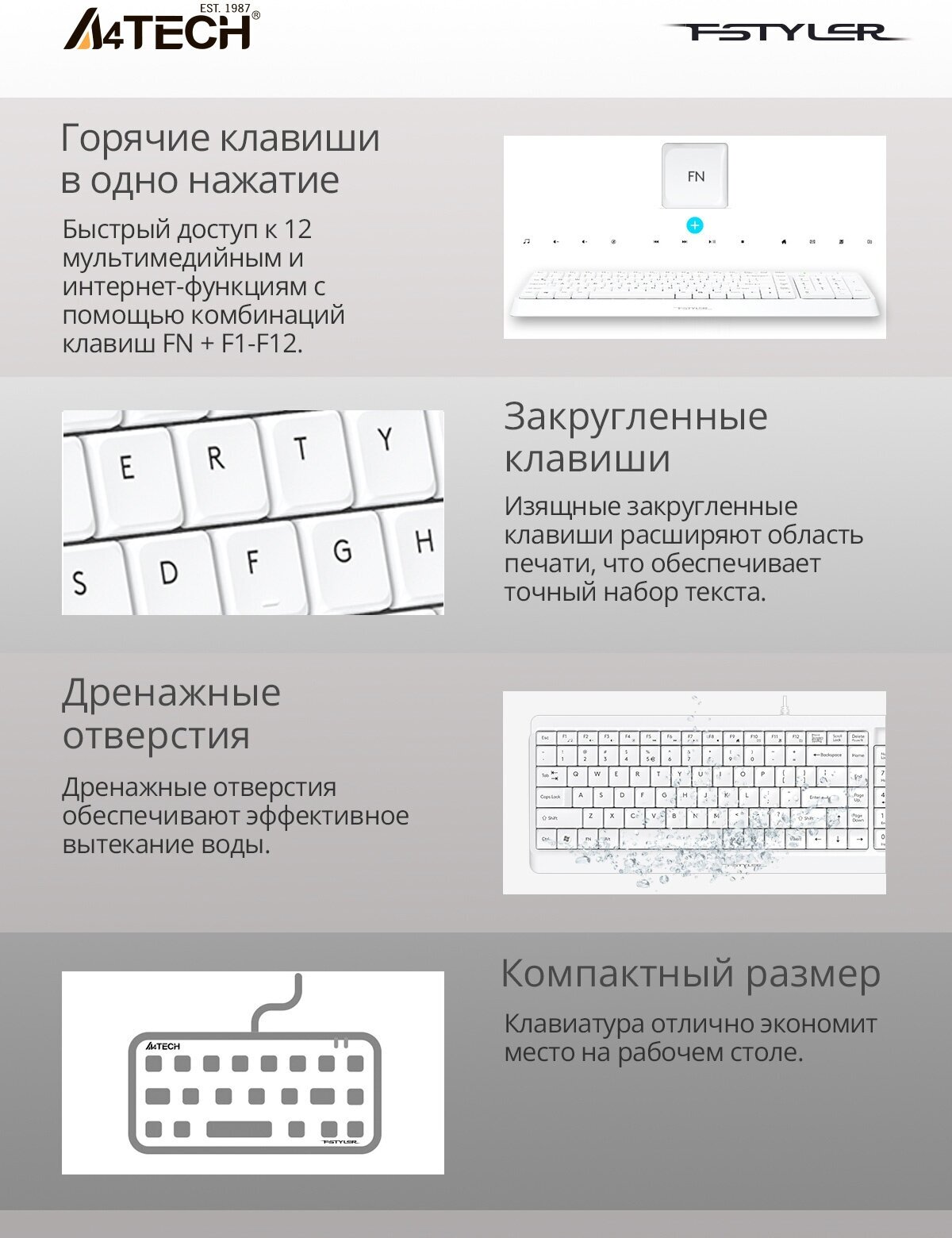 Клавиатура A4Tech белый, интерфейс USB (FK15 WHITE)