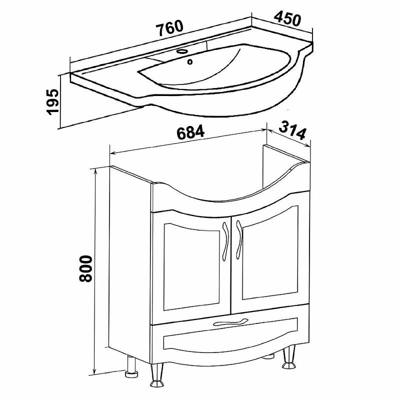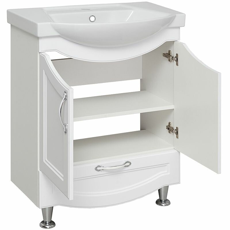 Тумба под раковину RUNO неаполь - неизменная классика, элегантность и стиль в оформлении ванной комнаты. Изящные линии с тонкой фрезеровкой на фасадах придают изделию утонченность и шик. Тумба в ванную монро (напольная) имеет две распашные дверцы и один выдвижной ящик на шариковых направляющих. В комплекте идут петли со встроенным доводчиком, 3 ручки, 2 хромированные и 2 пластиковые ножки. К тумбе подходит керамическая раковина "Элеганс" (760*450 мм). Раковина имеет глубину 20 см. Мебель для ванной RUNO - красота и практичность в мелочах!