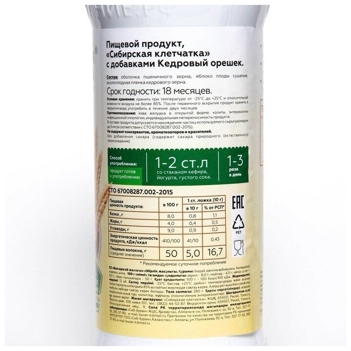 Клетчатка «Кедровый орешек» готова к употреблению, не требует заваривания: