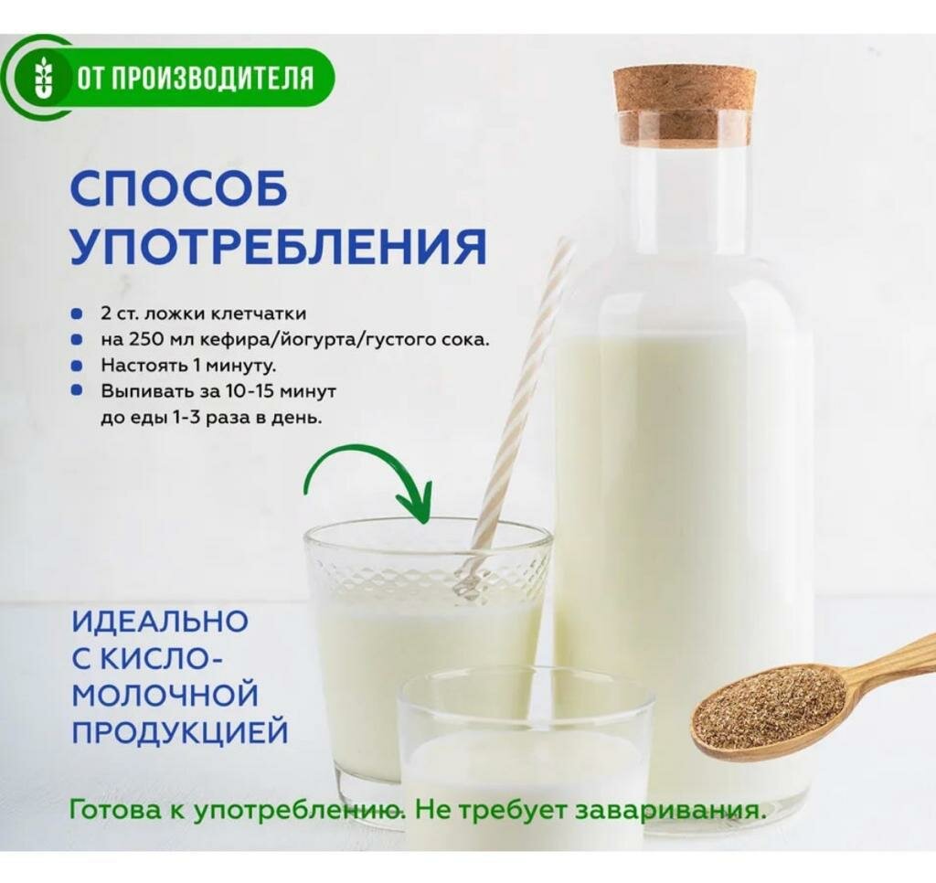 2 ст. ложки клетчатки на 250 мл воды комнатной температуры или кефира/йогурта/других густых жидкостей. Настоять 1 минуту. Выпивать за 10-15 минут до еды 1-3 раза в день.