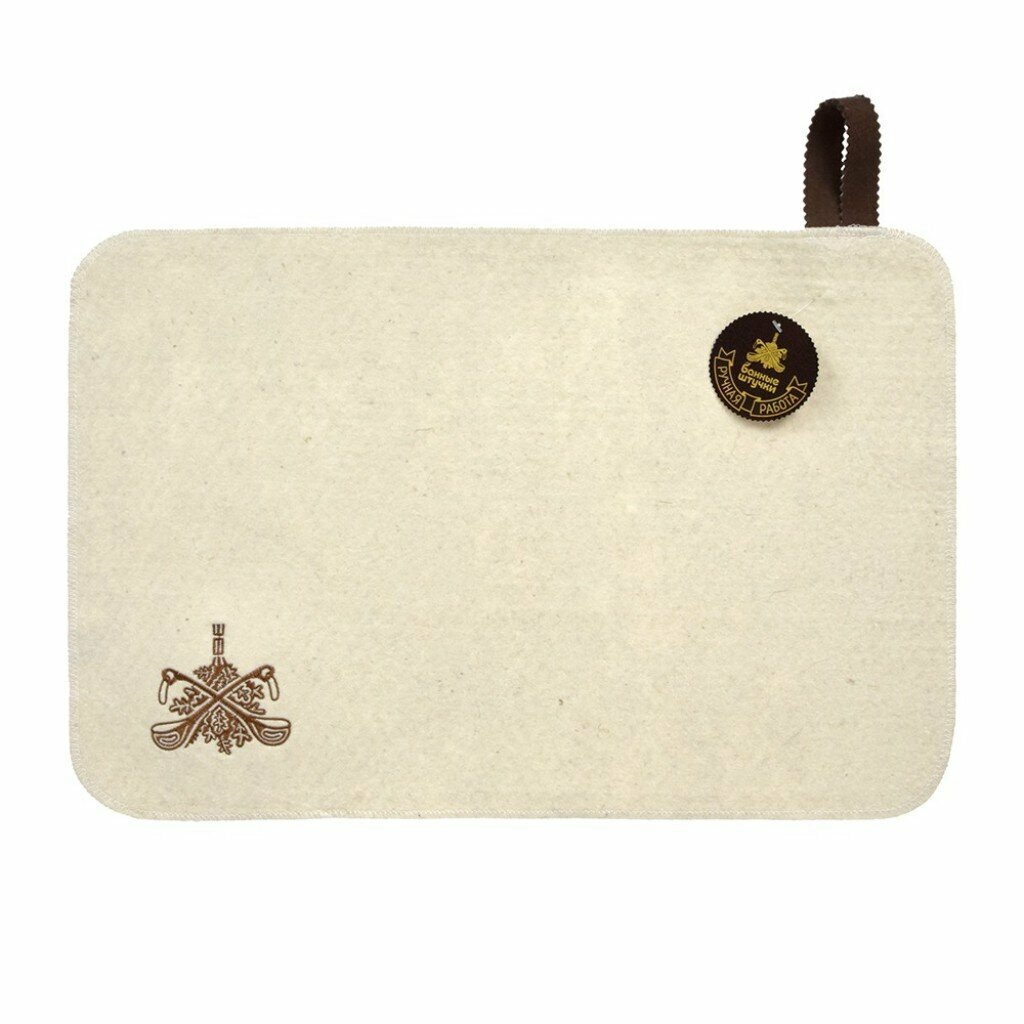 Коврик ручной работы необходимый банный аксессуар. Является средством личной гигиены, защищает открытые части тела парильщика от перегретых поверхностей полок, лавок в парной бани и сауны. Благодаря специальной петельке, коврик можно повесить на стенку.
