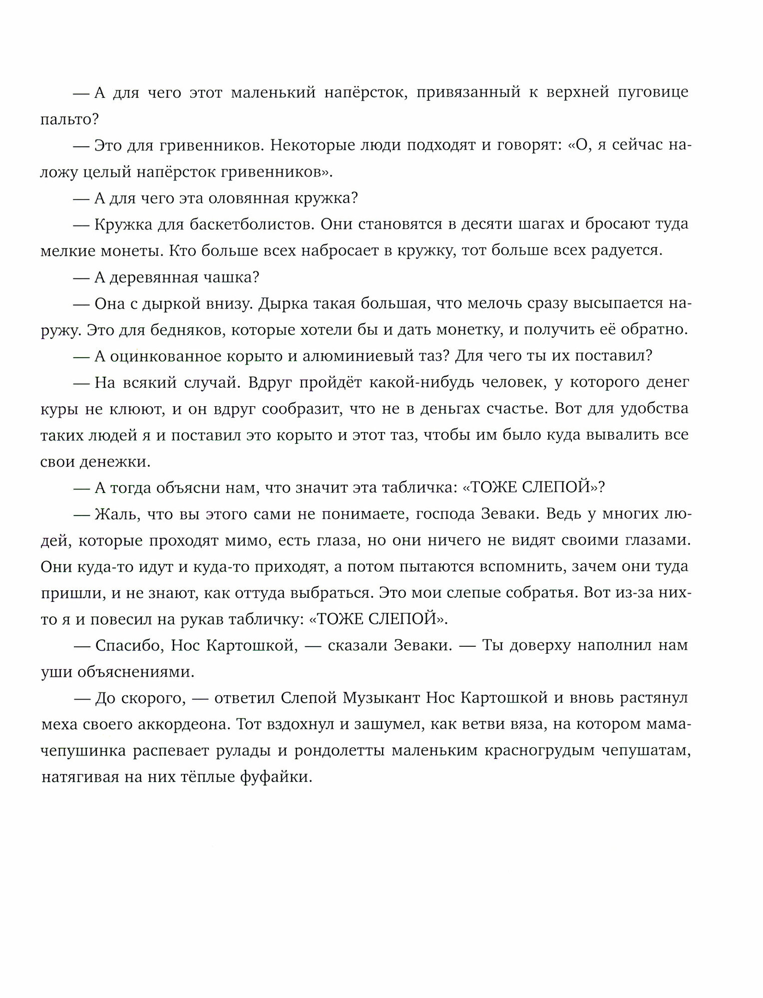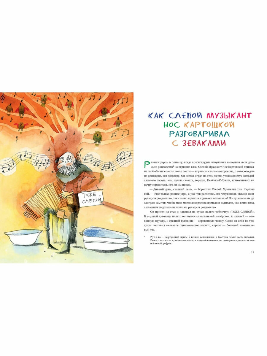 Если однажды приобрести специальный билет с голубой молнией и дырочкой посередине, то по рельсам, идущим зигзагом, можно приехать в городок Печёнка-С-Луком - столицу удивительной Страны Рутабага. Здесь прямо из неба растут воздушные шары, поросята носят клетчатые слюнявчики, а музыкант Нос Картошкой болтает с Зелёной Крысой о жизни…
