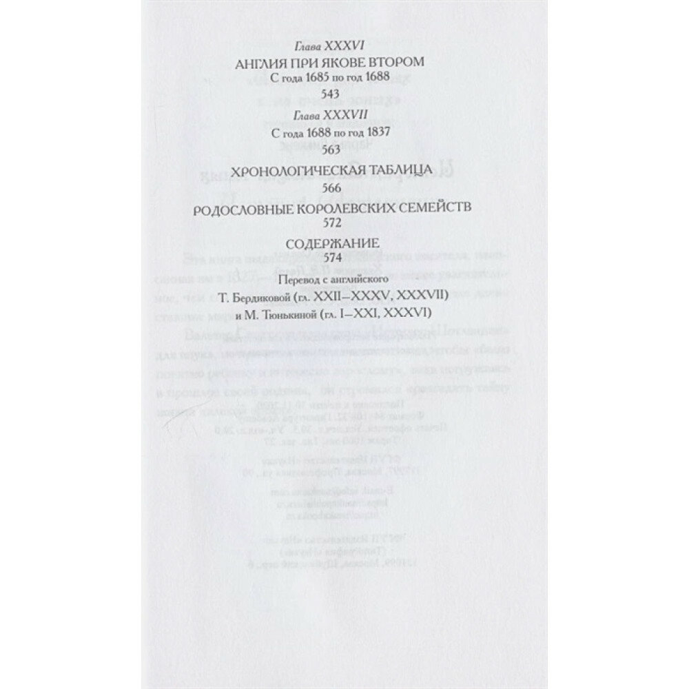 Данную книгу купил в дополнение к Истории Шотландии Вальтера Скотта: его история заканчивается XVI веком, дальше судьба Шотландии неразрывно связана с Англией. Такое же качественное оформление. Белая бумага. Иллюстраций немного меньше, но не мало. В отличие от Истории Шотландии все они- полностраничные. Имеются приложения: Хронологическая таблица правителей Англии вплоть до королевы Виктории и родословные королевских семейств.