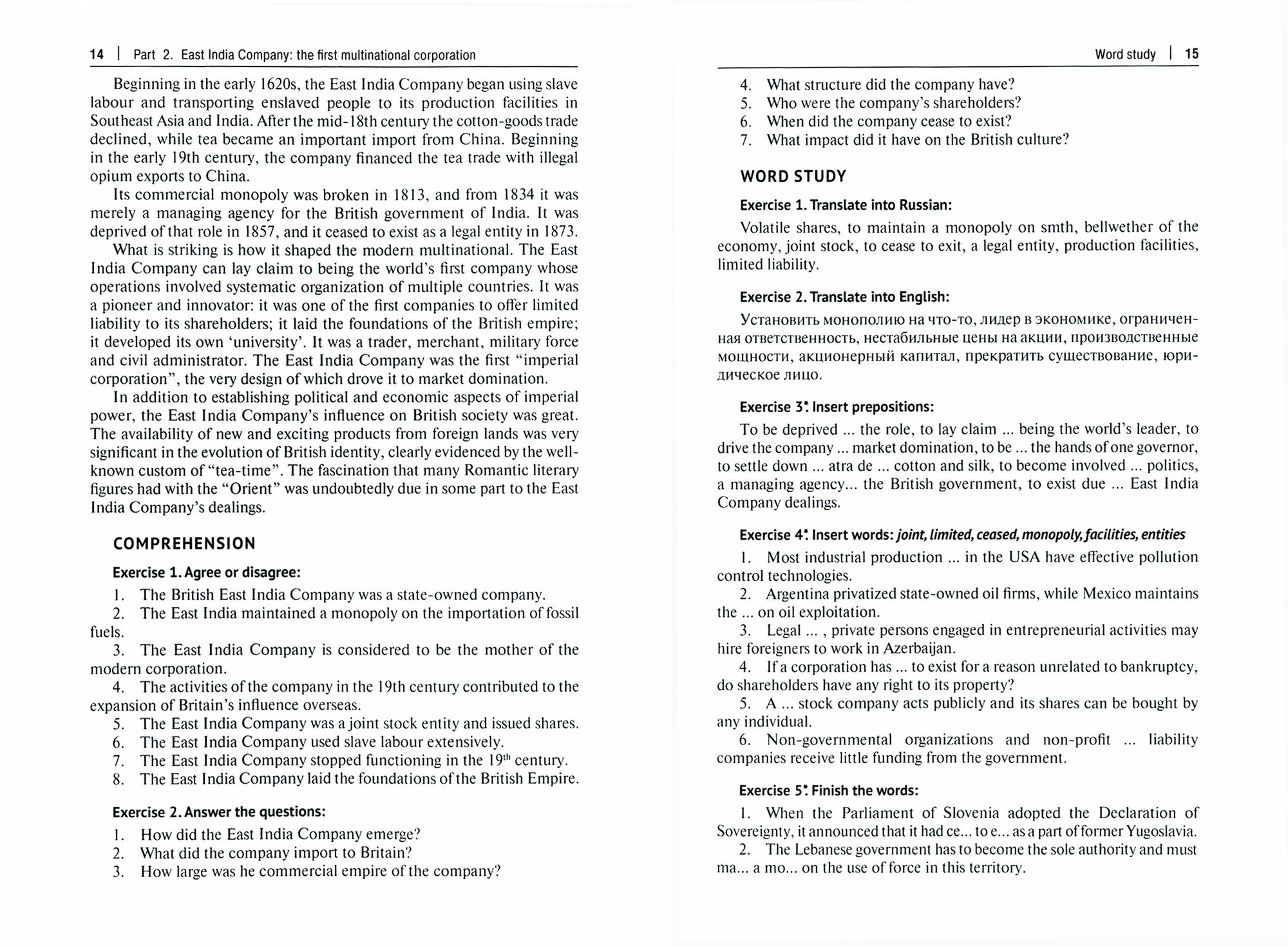 Цель учебного пособия – формирование у студентов коммуникативной компетенции в области профессионального общения на основе аутентичного англоязычного материала. Тексты, представленные в книге, призваны познакомить учащихся с «тремя китами» экономики Великобритании, включающими предпосылки, ресурсы и организующий принцип экономического развития. Пособие затрагивает такие вопросы, как промышленный переворот в Англии, факторы производства, экономическая модель, банковская система, ведущие отрасли промышленности и некоторые другие. Тексты сопровождаются системой упражнений, нацеленных на развитие и совершенствование речевых умений и навыков.