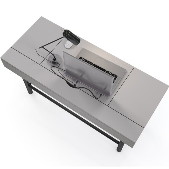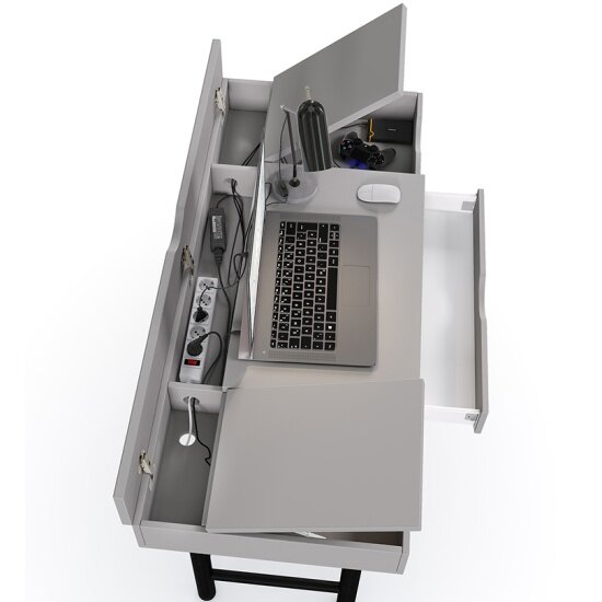 В столе предусмотрены отверстия для проводов, которые удачно можно скрыть благодаря закрытым нишам: