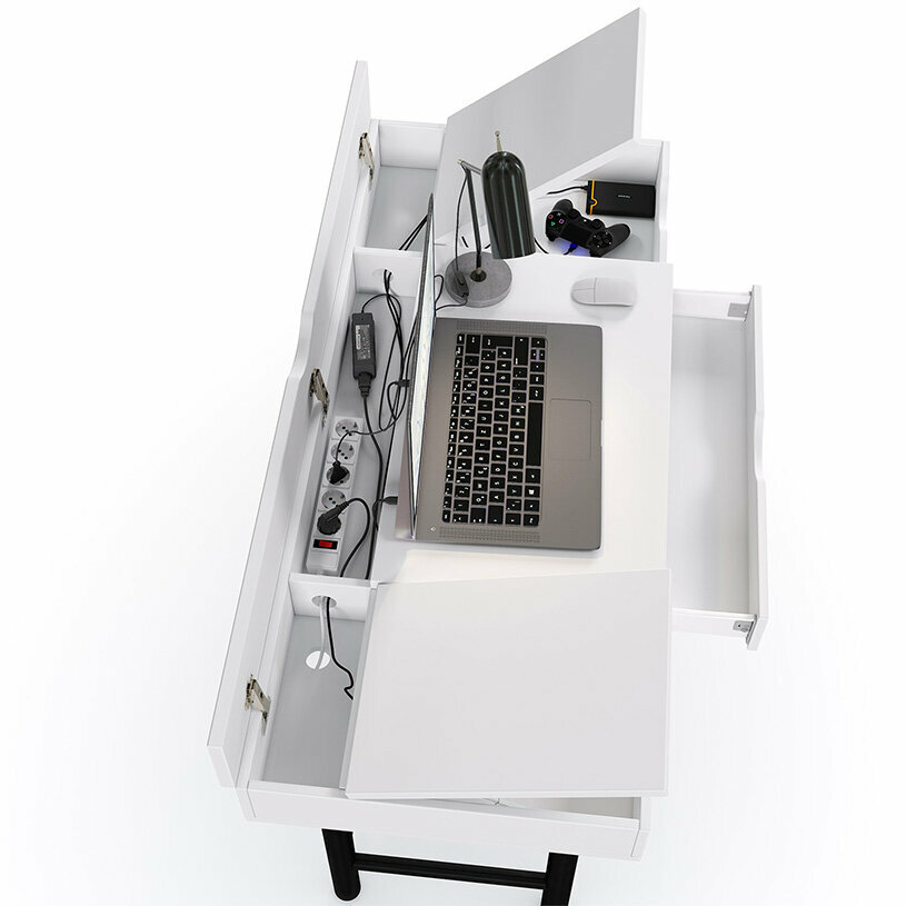 В столе предусмотрены отверстия для проводов, которые удачно можно скрыть благодаря закрытым нишам: