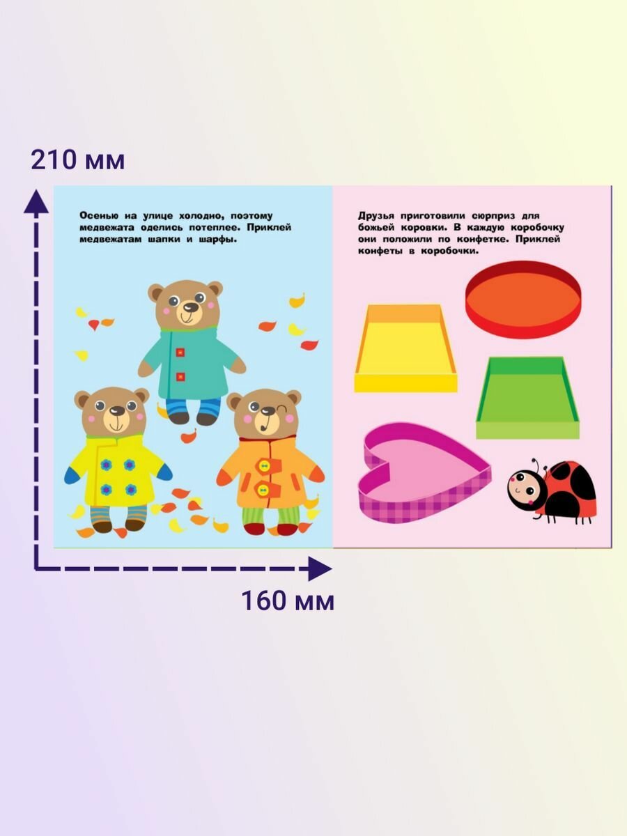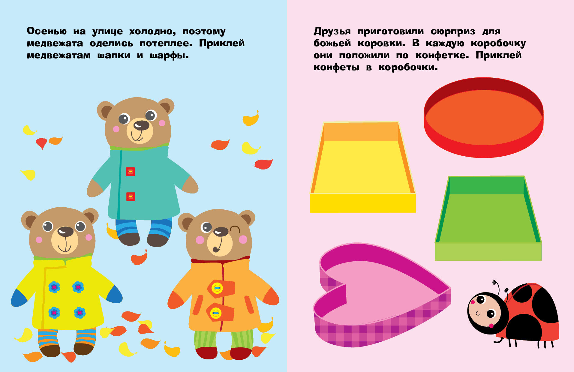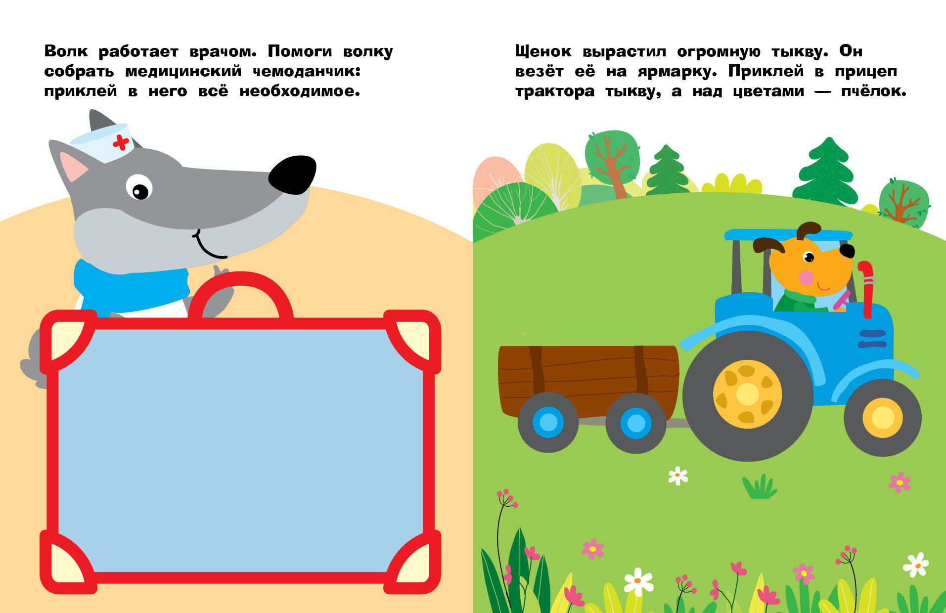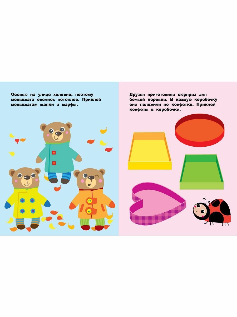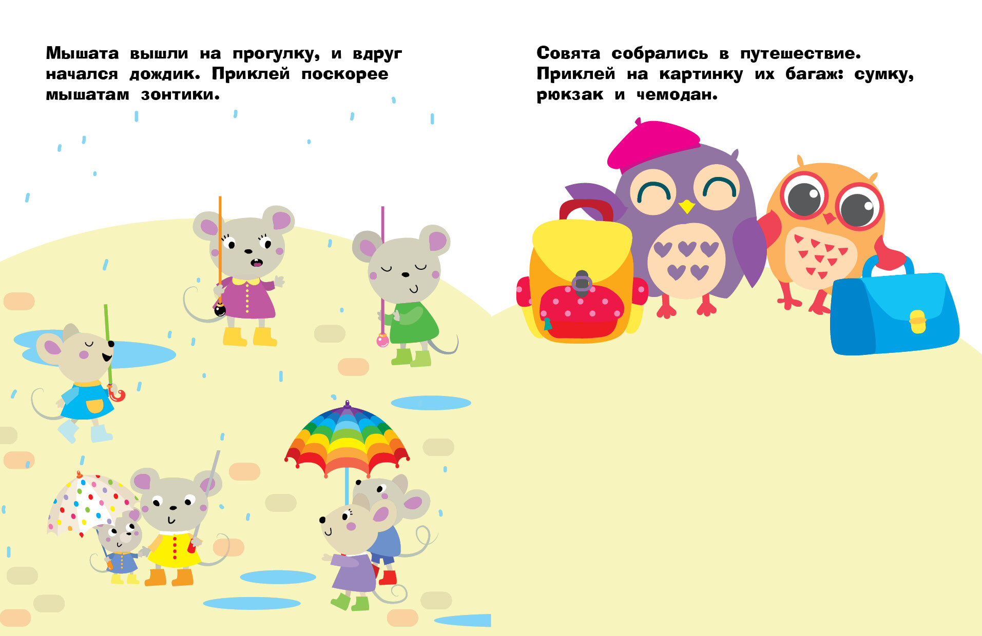 К каждой страничке идет небольшой комментарий с заданием, связанным с выбором и приклеиванием наклеек.