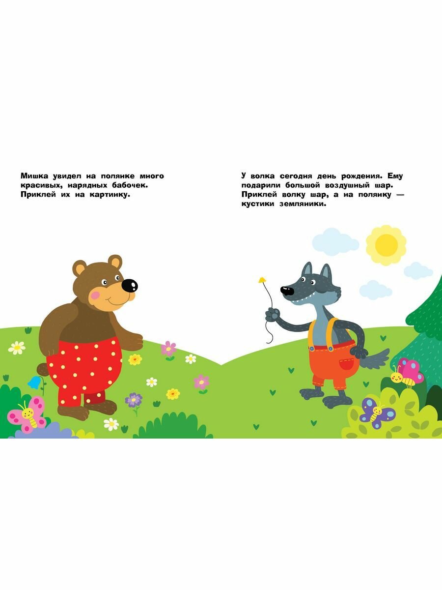 Наклейки крупные, фигурные, с цветным обрамлением. Переклеить их после первой игры нельзя, т. к. это испортит страницу.