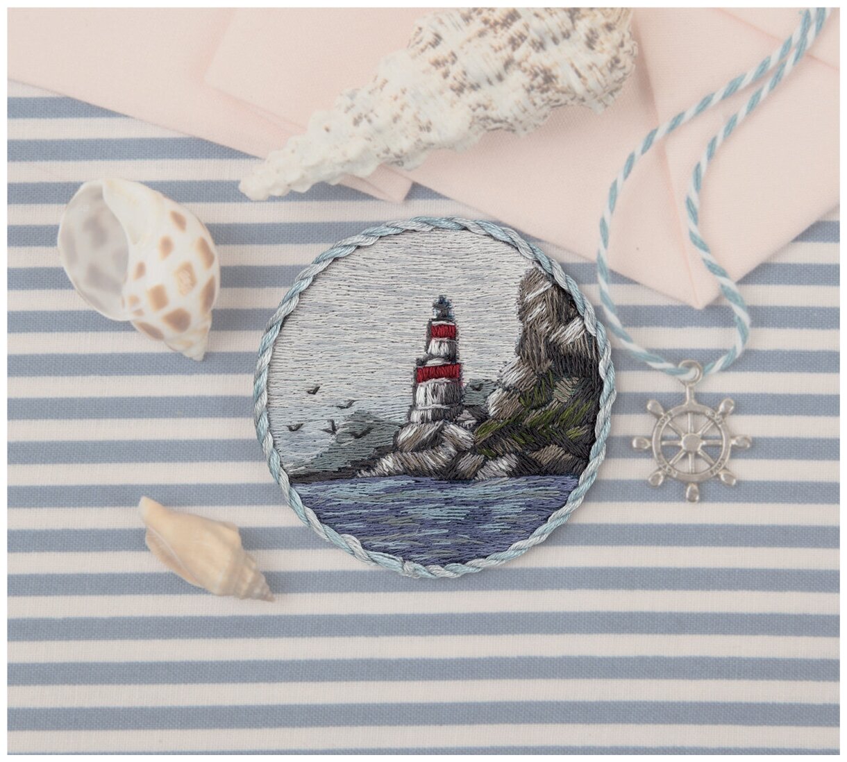 Модель: Живая картина, брошь, "Маяк на берегу"