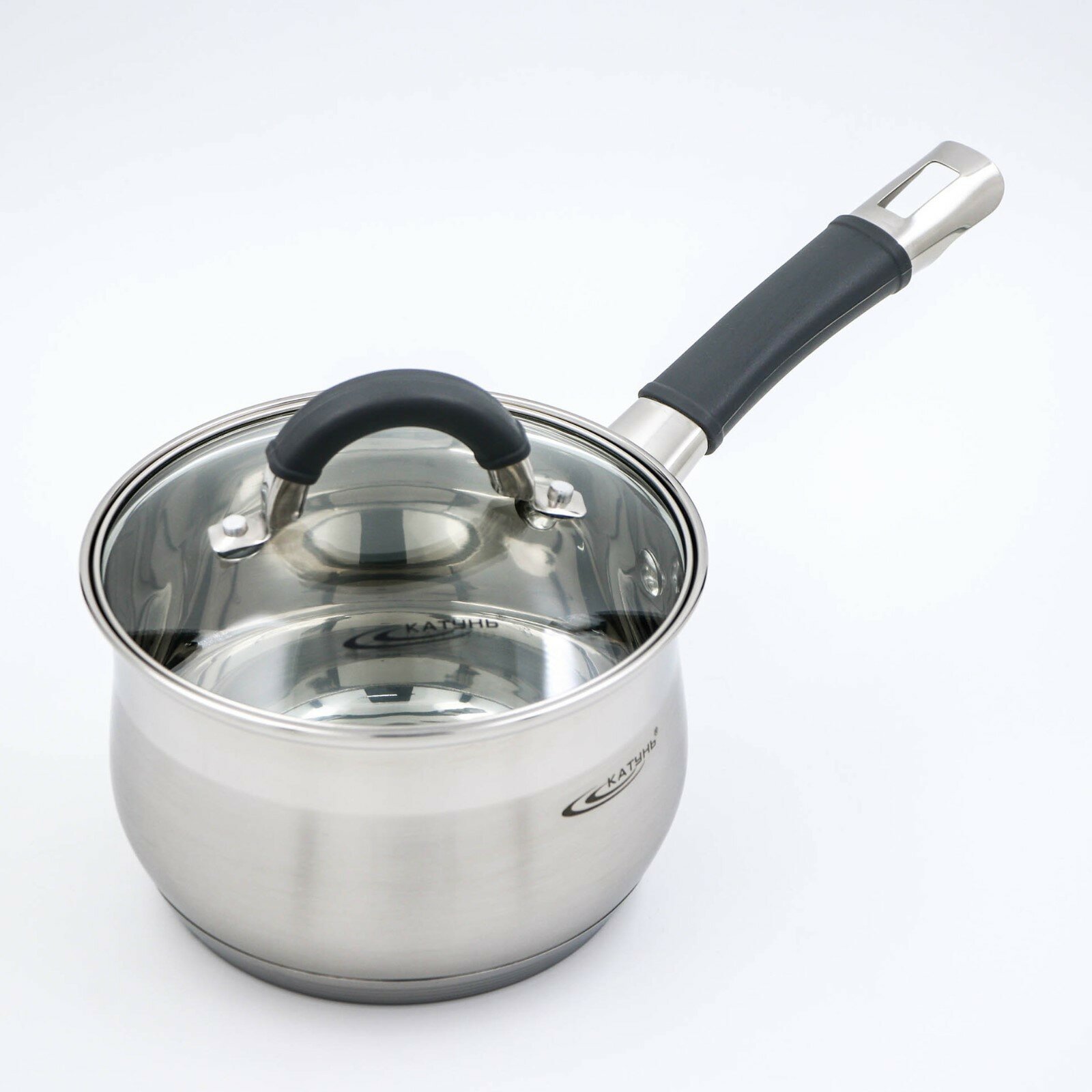 Ковшик из нержавеющей стали Катунь Ирида объемом 1,9 литров идеально подойдет для приготовления небольшого количества еды. Крышка стеклянная, с пароотводом, прозрачная. Ручки ковша покрыты термостойким силиконом.