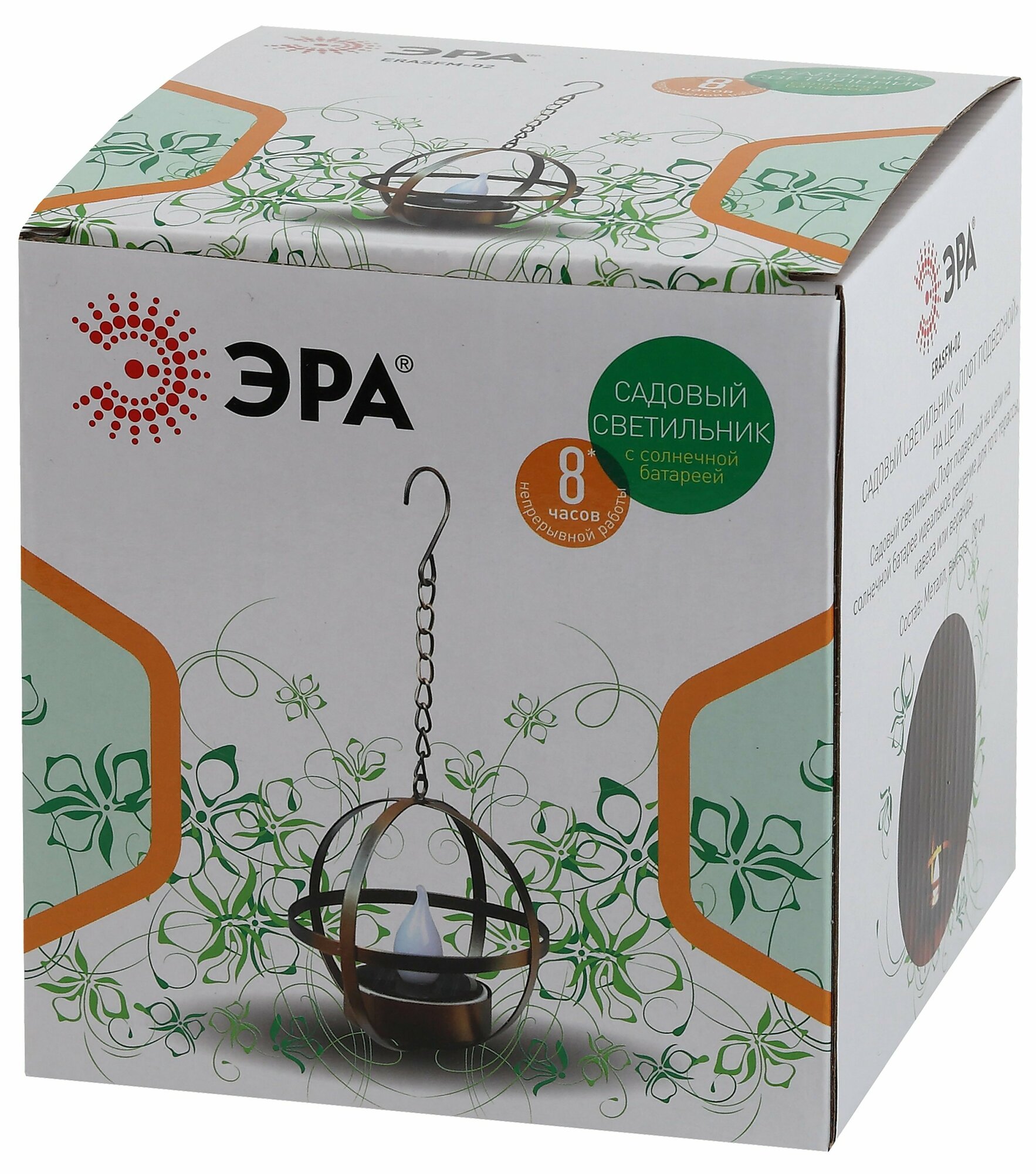 Подвесной садовый светильник Лофт придаст Вашей дачной территории немного таинственности. Небольшие внешние габариты позволят Вам разместить светильник на фасаде или карнизе дома, слегка подсветить тропинку, ворота или террасу. Металлический светильник имеет большой крючок для подвешивания. LED светильник функционирует на солнечной батарее. Такой способ получения энергии является самым экологичным, энергоемким, а также бесшумным. Питание происходит во включенном режиме, днем. Самое интересное начинается после захода солнца: декоративная свеча начинает светиться теплым желты светом, создавая эффект пламени. Обстановка на участке приобретет немного таинственный характер за счет необычного решетчатого корпуса. Солнечная батарея предусматривает 8 часов непрерывной работы. Высокая степень защиты от пыли и влаги позволяет оставлять светильник на улице даже во время дождя. Обращаем Ваше внимание, что перед использованием фигурки её необходимо включить и зарядить. Светильник заряжается в течение всего светового дня. Подвесной светильник для сада от компании ЭРА чудесный вариант для стилизации Вашей территории.
