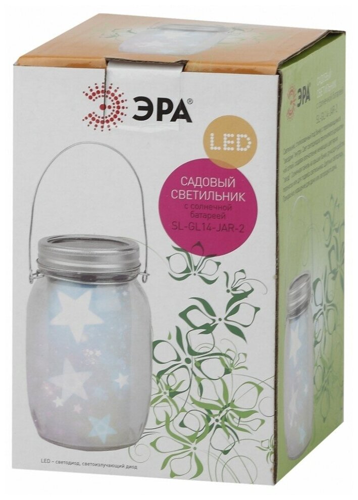 Светильник садовый Эра Банка 0.04Вт светодиод.лампа солнеч.бат. прозрачный SL-GL14-JAR-4