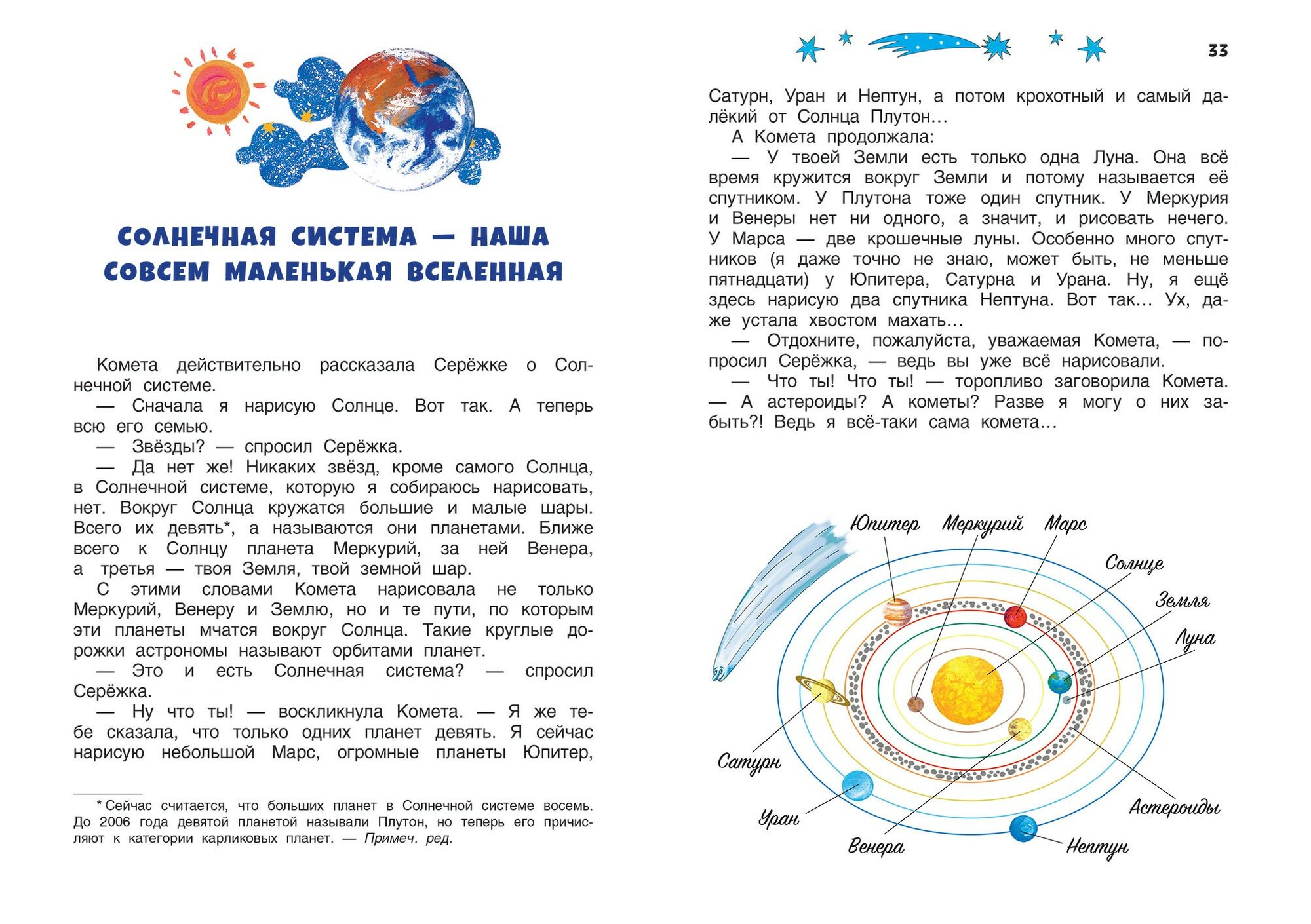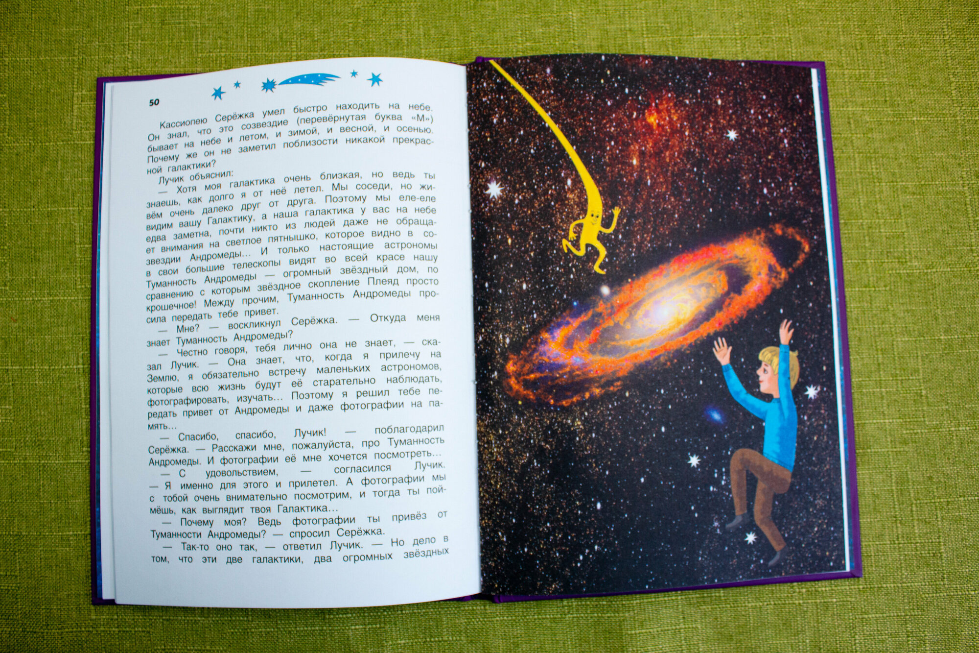 В этой книге юного астронома Серёжу ждут познавательные приключения, а еще она очень гуманистична, в ней есть ярко выраженный антивоенный мотив. Это очень здорово.