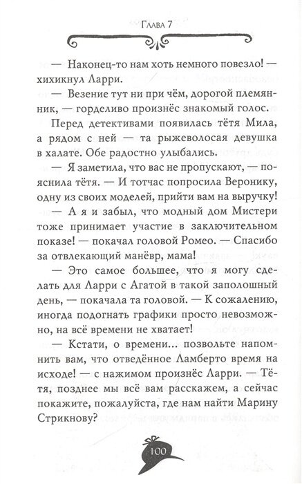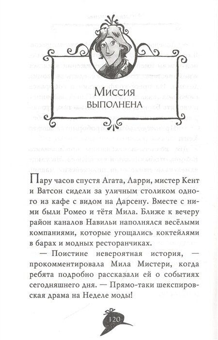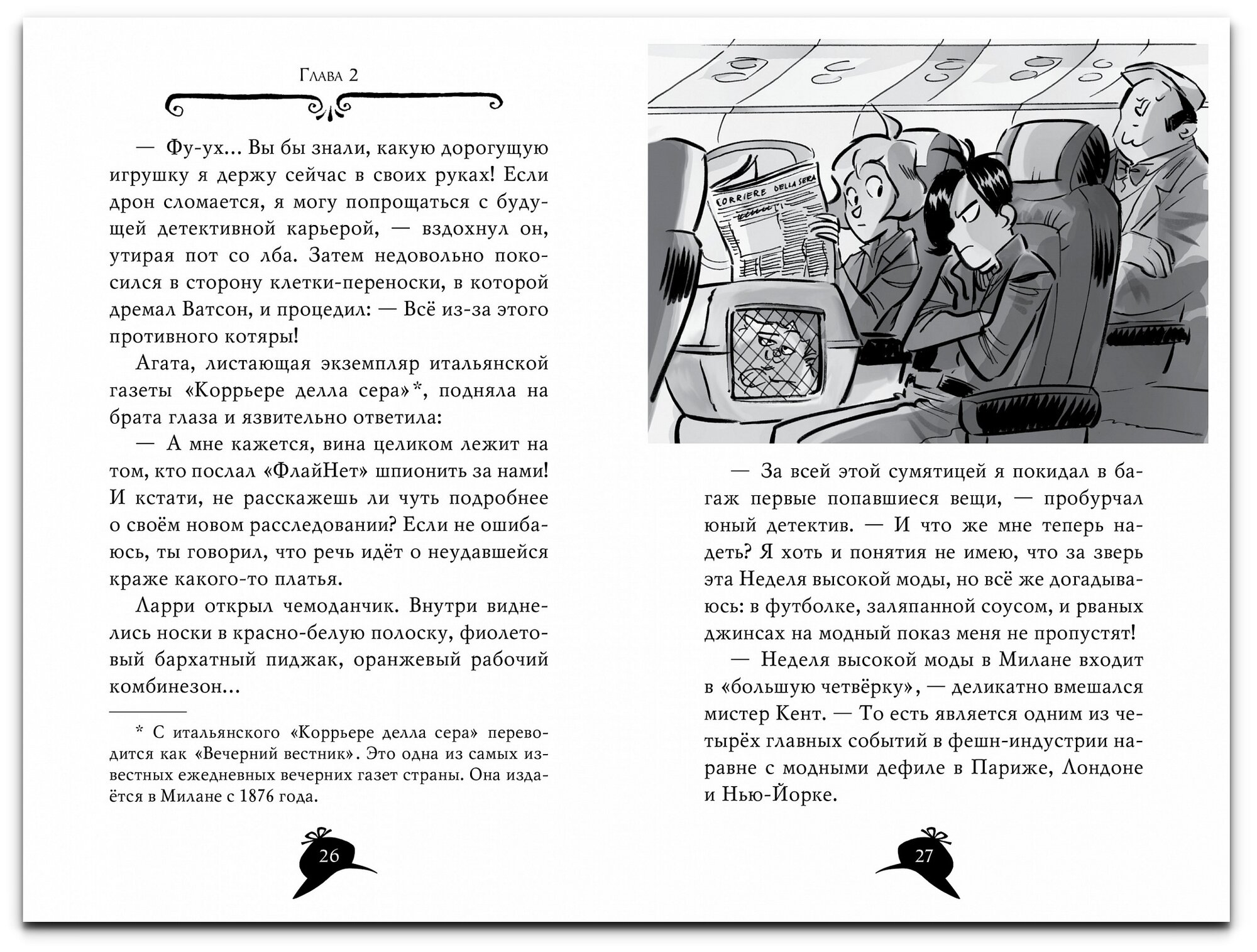 Но долг зовёт: уникальное платье всемирно известного модельера едва не похитили накануне показа, и Ларри должен вывести злоумышленника на чистую воду, конечно, не без помощи своей наблюдательной сестры Агаты. Ребята срочно вылетают в Италию, чтобы расследовать это загадочное происшествие. Однако дело внезапно оказывается гораздо серьёзнее, чем они думали: неудавшийся воришка, без сомнения, собирается кого-то убить! Но кто за этим стоит и, самое главное, кого он избрал своей жертвой?.. Это и предстоит выяснить нашим героям.