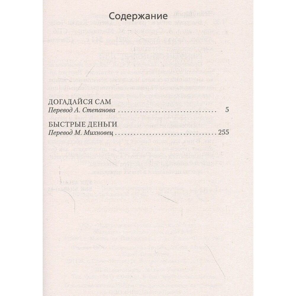 В настоящее издание вошли романы, написанные в начале 1950-х годов, - "Догадайся сам" и "Быстрые деньги". В них, как часто бывает у Чейза, жажда обогащения толкает героев на преступления, но предугадать, как будет развиваться сюжет, не по силу даже самым искушенным поклонникам этого мастера детектива.